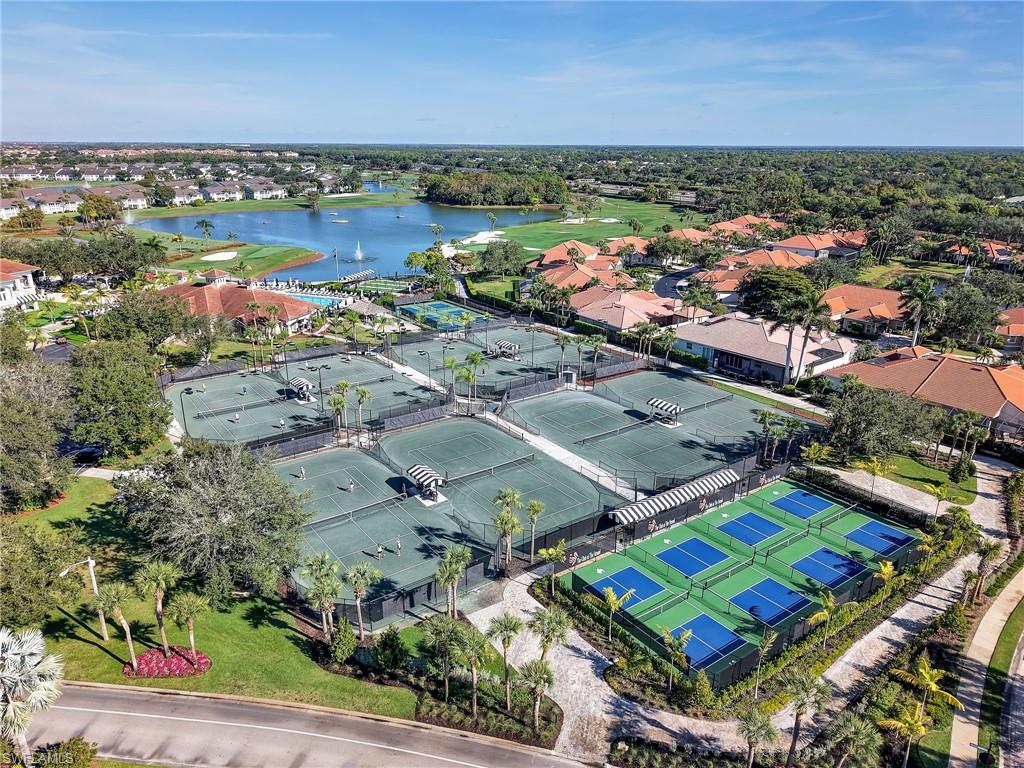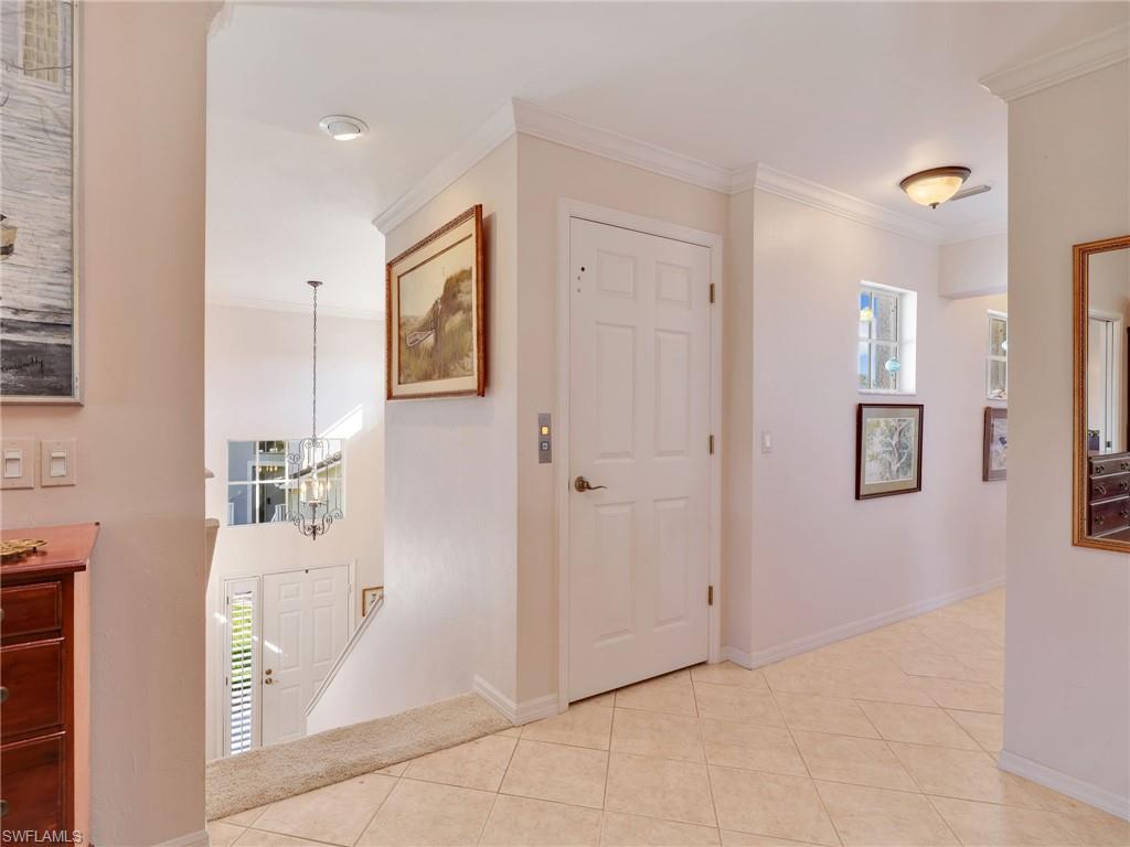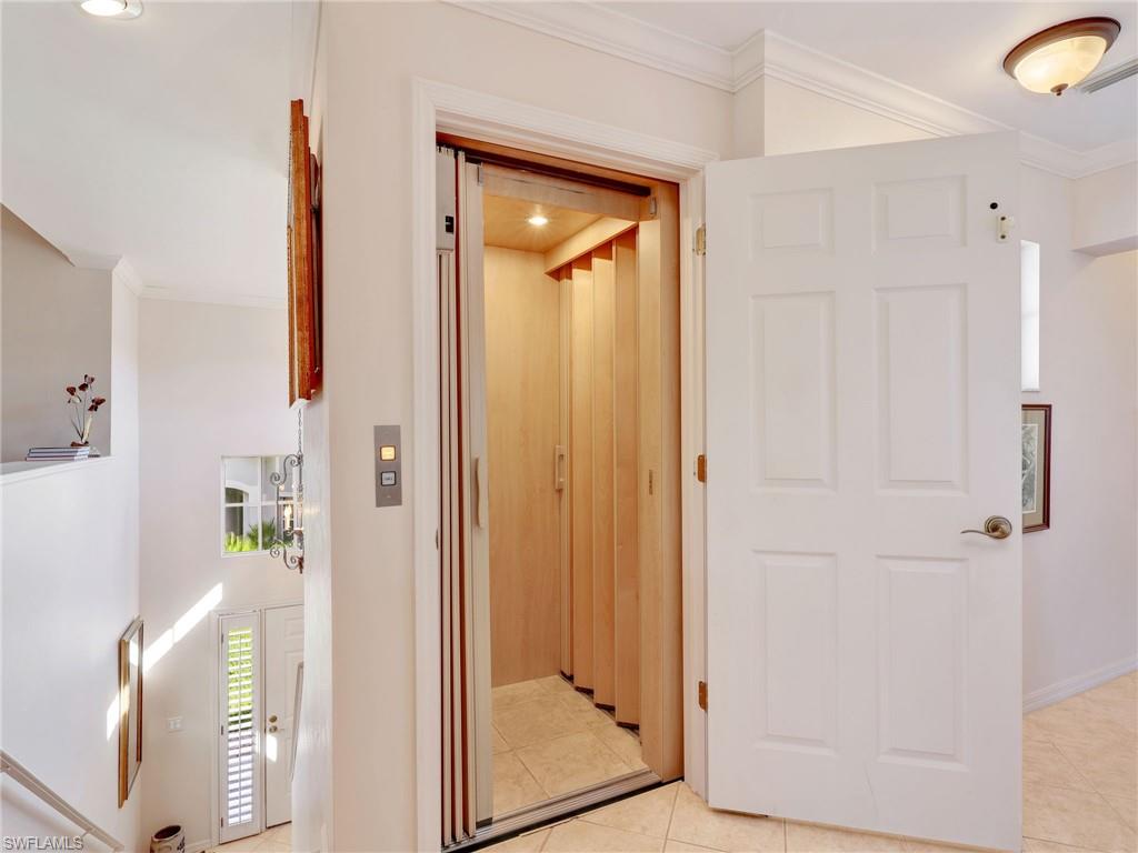 Experience the ultimate Southwest Florida lifestyle in the highly desirable Clubside at The Strand u2013 a prestigious, guard-gated golf community in North Naples where resort-caliber amenities are just a short walk from your front door and the areau2019s best beaches, shopping, and dining are only minutes away. Interior/Exterior Highlights: Impeccably maintained and move-in ready, this spacious 3-bedroom + den, 2-bath residence with private elevator lives like a single-family home without the hassle. Soaring cathedral ceilings, Plantation Shutters, abundant natural light, Custom lighting, tile flooring, with newly installed carpet create an open, airy ambiance. The flexible floor plan features a versatile den/office which opens to the living area or easily converts to a private retreat. The chef-inspired kitchen is designed for entertaining with 42u201d solid walnut custom cabinetry, granite countertops, stainless steel appliances, and a bright morning room perfect for casual meals. Both primary suites and the third bedroom boast abundant custom closets and storage. Newly installed carpet in 2 bedrooms and stairway, add fresh comfort, while the convenient elevator and full-size 2-car garage with built-in storage make daily living effortless. For peace of mind: HVAC (2020), water heater (installed last month), and a durable stone-coated steel tile roof with 50-year lifespan (2022). Step out to your screened lanai with custom cabinetry and electric hurricane shutters u2013 the ideal spot to sip morning coffee or host sunset gatherings while enjoying serene golf course and sparkling lake views. The Strand Lifestyle & Amenities: Clubside residents enjoy included social membership and a short stroll to the 55,000 sq ft clubhouse. Resort-style amenities abound: multiple indoor/outdoor dining venues with a vibrant social calendar, a state-of-the-art fitness center with day spa and group classes, eight Har-Tru lighted tennis courts, dedicated pickleball courts, bocce & croquet, outdoor basketball, a heated Junior Olympic pool with Island Bar, and the iconic Chickee Hut. Optional memberships open access to 27 holes of championship golf, aqua driving range, putting greens, and the Golf Academy. Summary: Low-maintenance, lock-and-leave living in one of Naplesu2019 most sought-after communities u2013 welcome home!