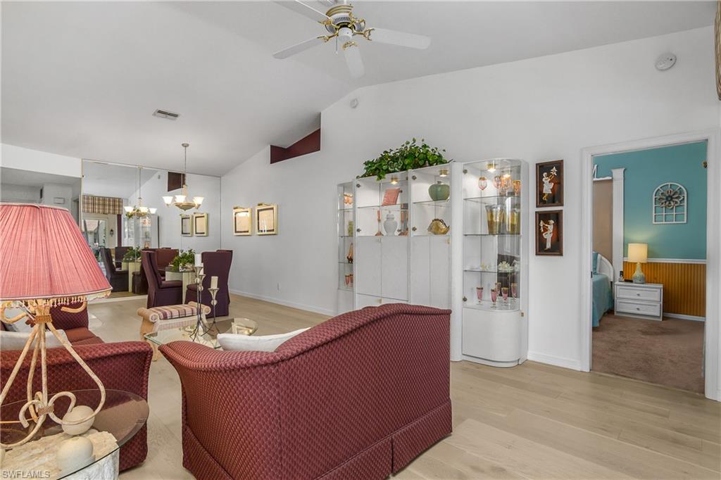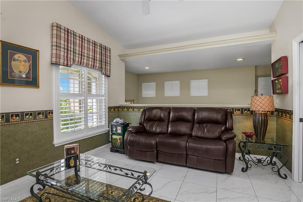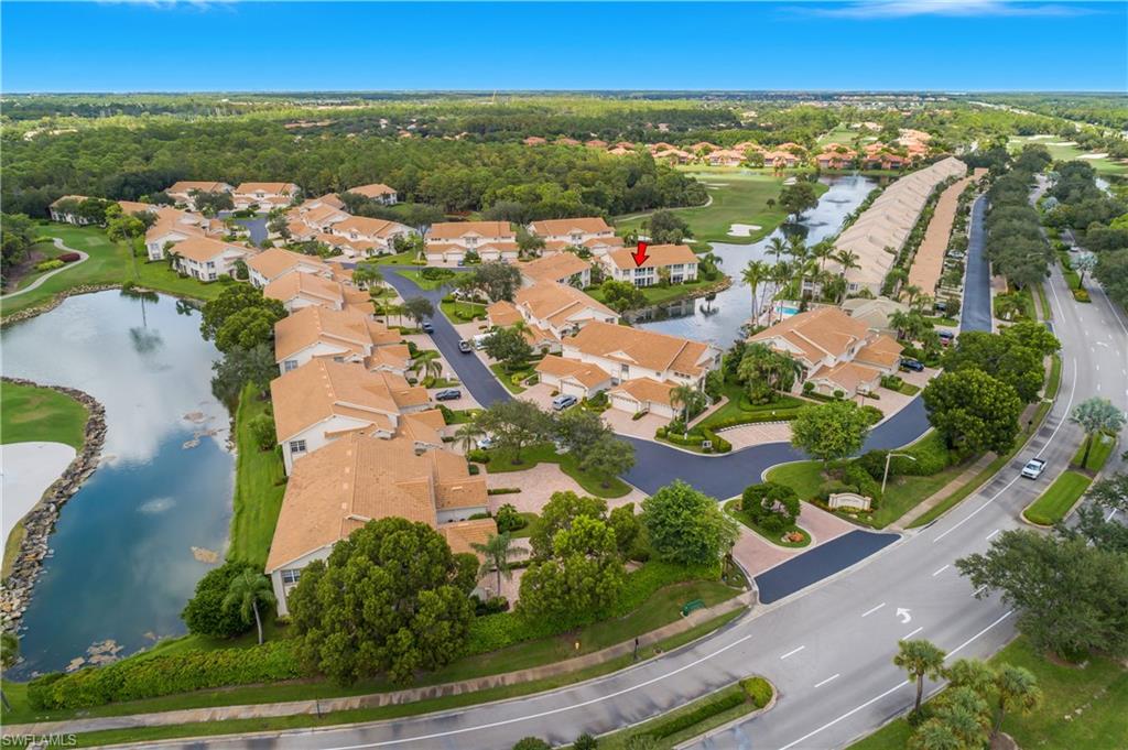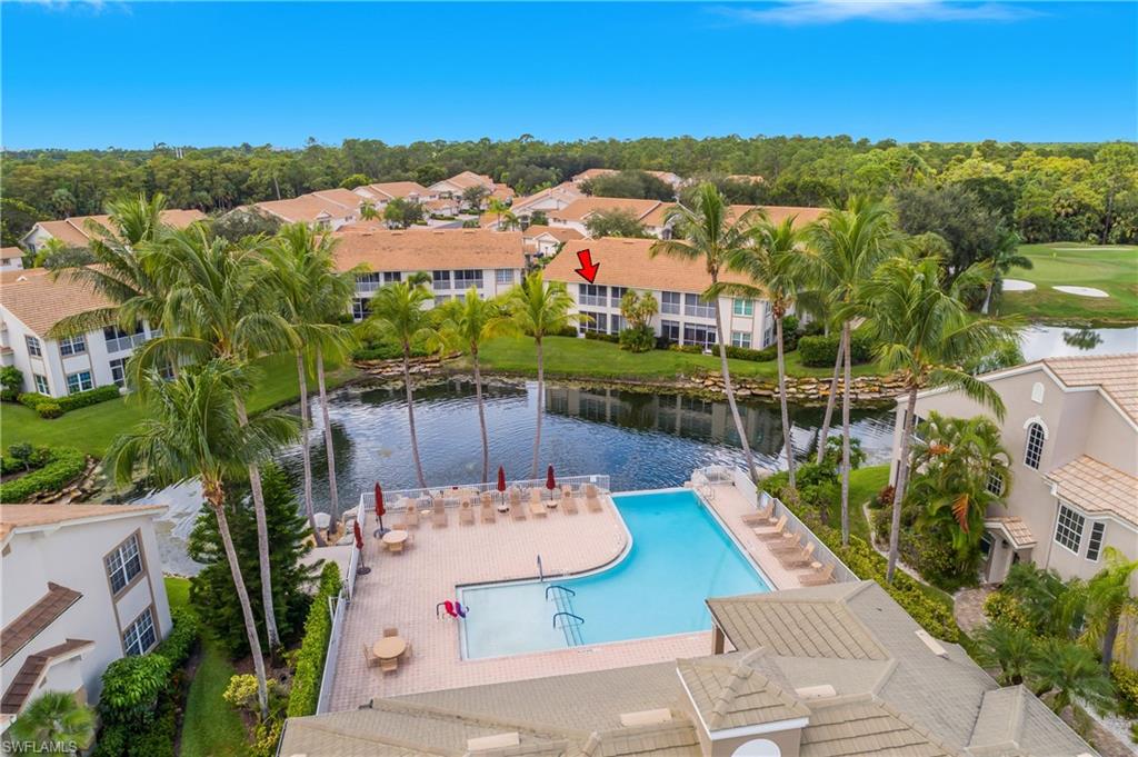 Welcome to this beautifully maintained second-floor residence in the Strand that offers 2 bedrooms, 2 baths, plus a versatile den-ideal for a home office or guest space. Lovely, light and bright eat-in kitchen to enjoy your morning coffee, and open great room and dining room ideal for entertaining . The open, light-filled floor plan features wood and tile floors in the main living areas, soft carpet in the bedrooms, and an air-conditioned glass enclosed lanai that extends your living space while showcasing peaceful lake and pool views showcasing an outstanding view of our lake along with three cascading waterfalls plus pool and clubhouse. A new roof adds peace of mind. The Strand is one of Naples premier gated communities, known for its newly remodeled clubhouse, outstanding dining, golf tennis, pickleball, fitness center and endless social activities. With its prime location and resort-style amenities, this condo is the perfect blend of comfort, style and Florida living. Donu2019t miss this one!!!!