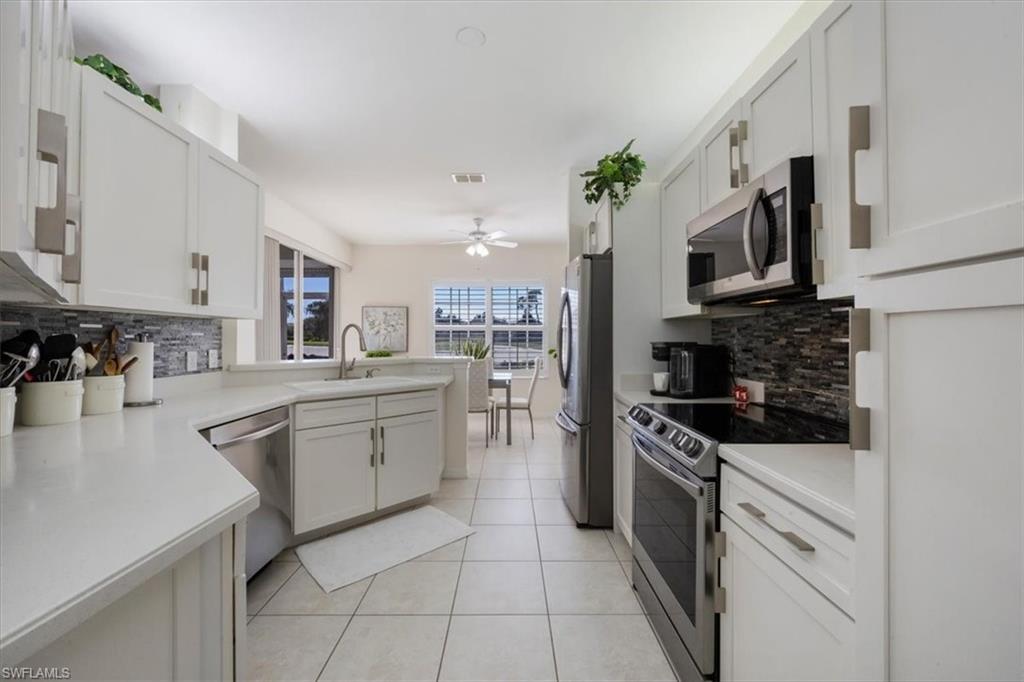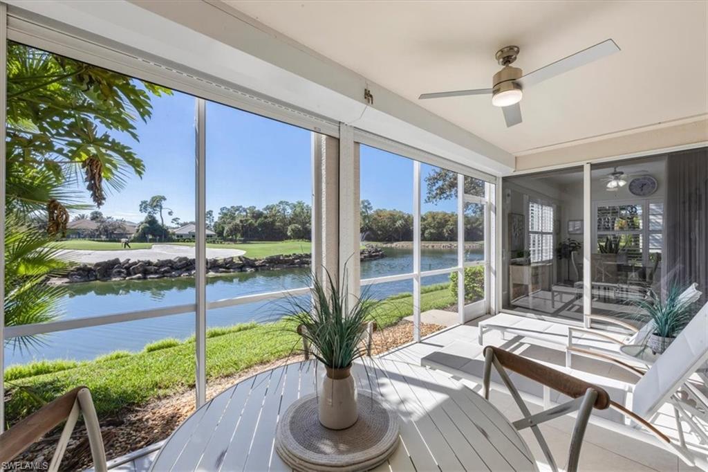 Enjoy peaceful sunsets and beautiful golf and water views from this tastefully updated 1st-floor end-unit condo in Cypress Cove at The Strand. This spacious residence features 3 bedrooms, 2 baths and a 2-car attached garageu2014all surrounded by quiet water, golf and western sunset views.The updated kitchen shines with brand-new cabinetry (2024), stainless steel appliances (2022), new countertops and backsplash, updated flooring, and a new AC system (2025). Other highlights include plantation shutters, electric hurricane shutters, custom closets, epoxy garage floor, and new tile on the lanai. Offered furnished with a few exclusions.Move right in and enjoy an active country club lifestyle within The Strandu2014where members enjoy 27 holes of championship golf, tennis, pickleball, bocce, croquet, a Jr. Olympic-size pool, a brand-new fitness centre, and two elegant restaurants, including the relaxed Island Bar. With only 23 carriage homes in Cypress Cove, this unit is conveniently located only steps away from the community pool and guest parking. This community is peaceful, beautifully maintained, and ideally located just minutes from Naplesu2019 pristine beaches, fine dining, shopping and RSW Airport.