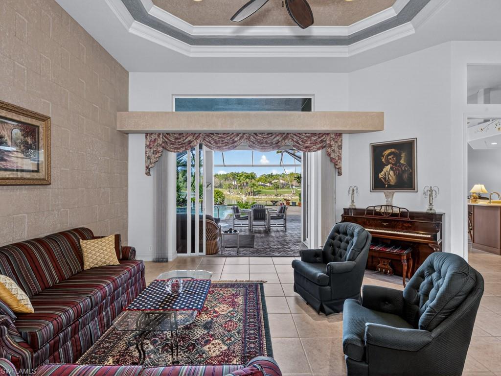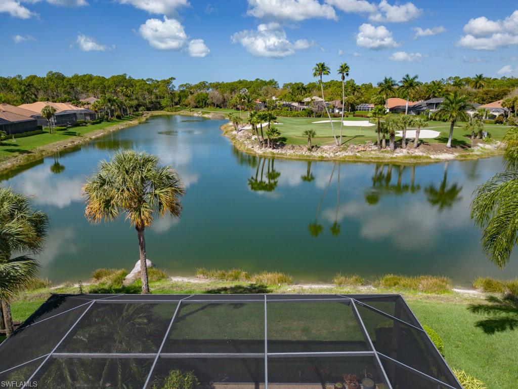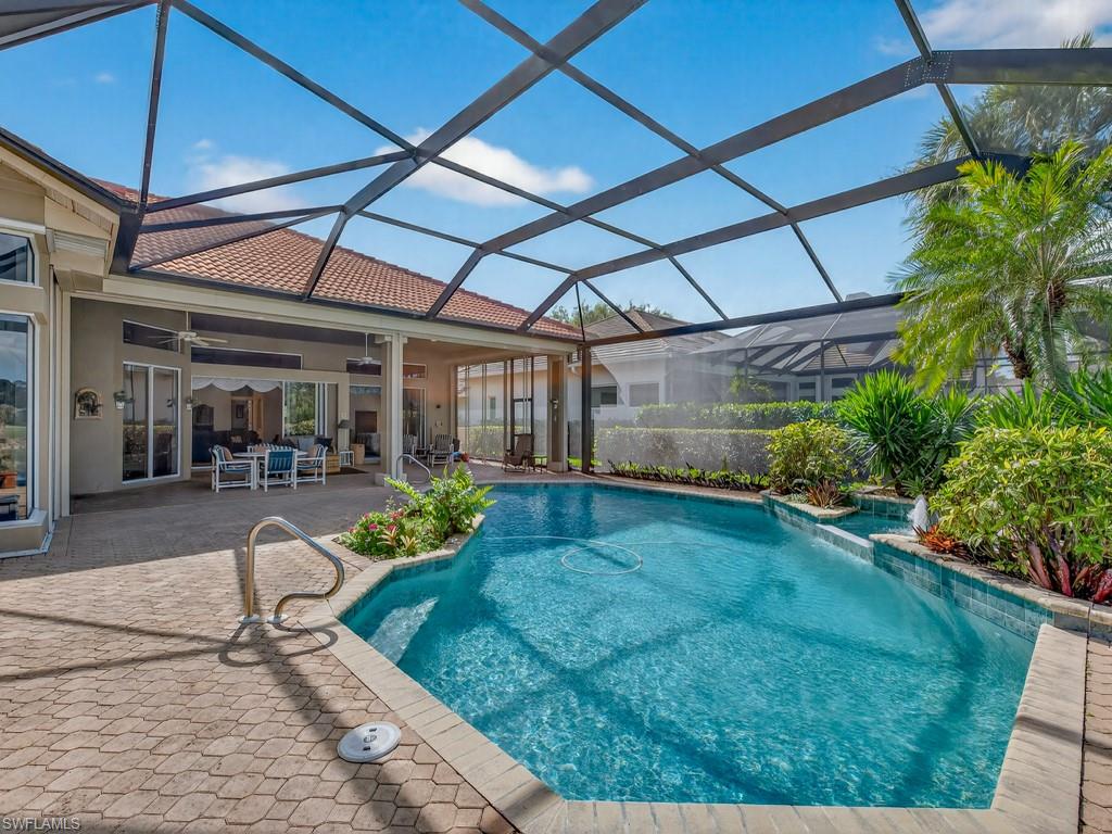 The most desirable long-lake view homesite in The Strand! If you have been waiting for an impressive lake view, then this IS your opportunity to secure the longest, mid-lake view lot in the entire community! Only 3 houses away from the Club At The Strand Clubhouse. Spacious estate home, boasting a 2-car garage + separate golf cart bay which is accessed on the right side of the home. Roof was replaced in 2019, along with both AC units. The updated `picture frame` screened lanai/pool area enclosure was installed in 2020. The home is equipped with a whole-home propane-operated generator for peace of mind following power outages. There are 4 true bedrooms, 3.5 baths, with one functioning as a convenient pool bath. A pool of these dimensions can only be found in estate homes within the community. The covered outdoor living area is remarkably spacious. This incredibly rare offering is just waiting to be made your very own! Enjoy an active country club lifestyle, complete with 3 beautifully maintained 9-hole golf courses, tennis, pickleball, all new state of the art fitness center, an impressive pool with lap lanes, newer bocce courts, as well as a recently added croquet center and Island Bar for residents to enjoy. The recently renovated main clubhouse next door to the Jr. Olympic pool houses two upscale restaurants: Fine dining on the upper level, and the Tavern 59 restaurant opens into botanical garden/outdoor wedding venue location. The Strand is conveniently located within close proximity to many dining/shopping options, and the famous sugar sand beaches of the Gulf are just a straight shot down Immokalee Rd.