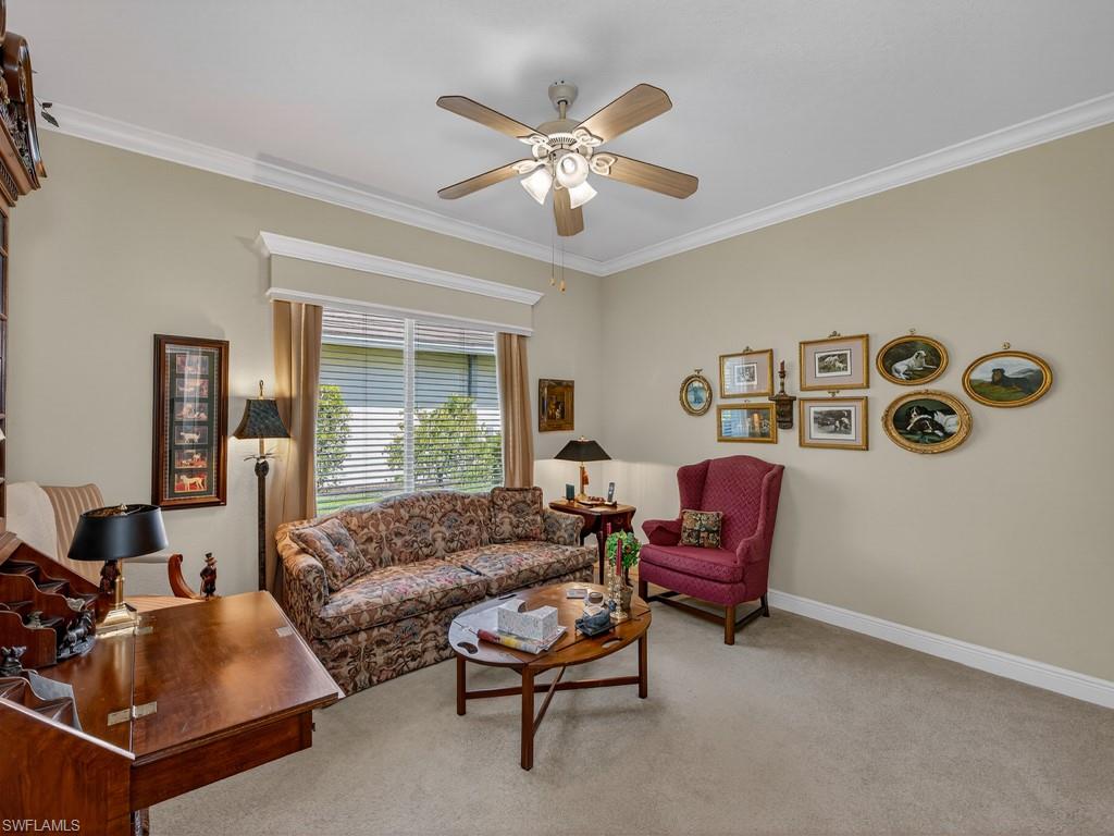 Beautifully situated just before the cul-de-sac on one the most desirable single-family home streets in The Strand. New roof in 2022. Premium western exposure allows for viewing gorgeous sunsets through the thick natural preserve to the rear of this grand residence. The homeu2019s impressive front elevation features a stately double door entry, large covered porch, extra wide driveway, and a three-car garage. The floor plan is spacious and rambling, with the owneru2019s suite on the south side of the home, two additional bedrooms, a den that can be used as a bedroom, and a flex/bonus room near the rear. The kitchen is a chefu2019s dream, complete with ample cabinetry, an extra-large island, and a walk-in pantry. The well-lit utility/laundry room boasts ample cabinetry, a utility sink, a closet, and a handy folding area. The formal dining room is graced by elegant glass cabinetry that has been repurposed from a vintage hotel. The covered outdoor area easily provides for both dedicated sitting and dining spaces. This home is a privacy loveru2019s dream. Enjoy day or night swimming in your very own private, open-air oasis. Enjoy an active country club lifestyle, complete with 3 beautifully maintained 9-hole golf courses, tennis, pickleball, all new state of the art fitness center, an impressive pool with lap lanes, newer bocce courts, as well as a recently added croquet center and Island Bar for residents to enjoy. The recently renovated main clubhouse next door to the Jr. Olympic pool houses two upscale restaurants: Fine dining on the upper level, and the Tavern 59 restaurant opens into botanical garden/outdoor wedding venue location. The Strand is conveniently located within close proximity to many dining/shopping options, and the famous sugar sand beaches of the Gulf are just a straight shot down Immokalee Rd.