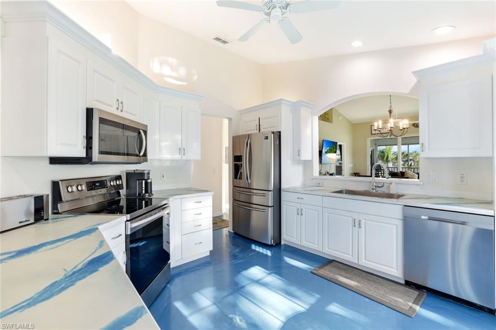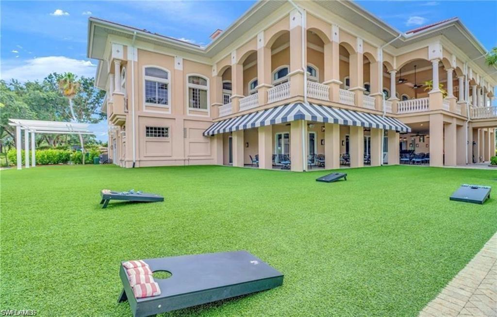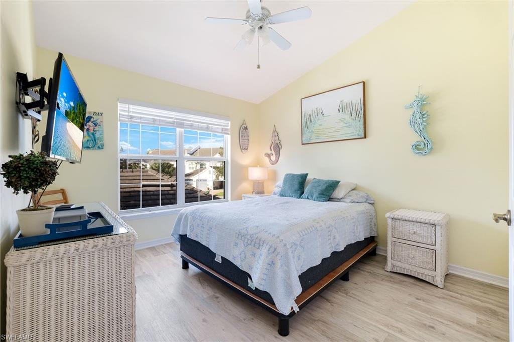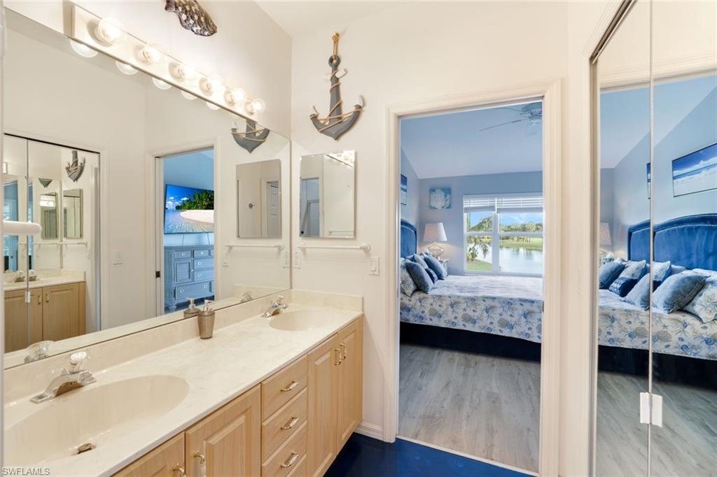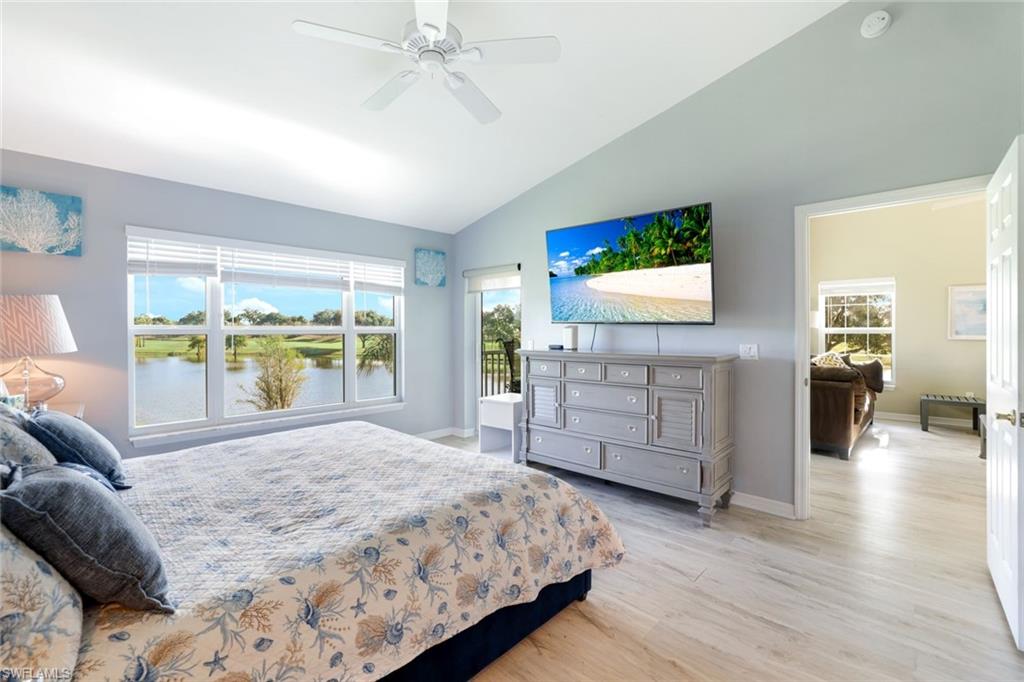 Welcome to effortless luxury and the most spectacular wrap-around views of the lake and golf course! This turnkey 2nd-floor end-unit in the highly sought-after Wedgewood at The Strand combines privacy, elegance, and convenience. Positioned as an upper-end unit with maximum space between buildings, it offers an unmatched sense of openness and tranquility.Step inside to discover soaring ceilings, new flooring throughout, and freshly painted interiors, creating a bright and inviting ambiance. The open-concept layout seamlessly connects the living and dining areas to a beautifully updated kitchen featuring modern countertops and stainless-steel appliances. A versatile den provides the ideal space for a TV lounge, home office, or guest retreat. Both full bathrooms are tastefully appointed, including the spacious primary suite that opens to the lanaiu2014where breathtaking views await.From your expansive screened lanai, take in panoramic lake and golf course views, or simply lower the electric shutters for convenience when traveling or during storms. Additional features include new hurricane-impact windows and sliders, a newer roof, updated gutters and landscaping, and a detached 1-car garage.Located within the prestigious Strand community, residents enjoy an optional 27-hole championship golf course membership and access to world-class amenitiesu2014a fitness center, spa, junior Olympic-sized pool, multiple dining venues, and social activities such as croquet, bocce, pickleball, basketball, and tennis.Turnkey and move-in ready, this exceptional home offers low-maintenance luxury living with some of the finest views in Naples. Schedule your private showing today and start living The Strand lifestyle!