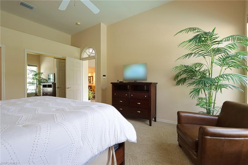 One of Naples' most desirable gated communities! Bright western exposure and serene vista golf course views from this two story detached villa residence. Furnished in a casual Florida style decor scheme of neutral tones with accents of color throughout. Main living level comprises of the main living room, dining room, kitchen, master suite, full office and powder room. The second level boasts a family room loft along with two bedrooms and guest bath. High ceilings in the main living area give the feeling of expanded living space. This residence boasts its own private screened heated pool and barbeque grill. Enjoy the exclusive social amenities The Strand has to offer including a gorgeous 32,000 square foot full service clubhouse with formal and casual dining, main club heated pool and spa, internet communication center with fax service, pro-shop, exercise facility, tennis club, unique botanical gardens and security guarded gated entry. * Tenant to pay a $15 fee (per decal) for an issuance of a gate decal in order to gain access into the community.