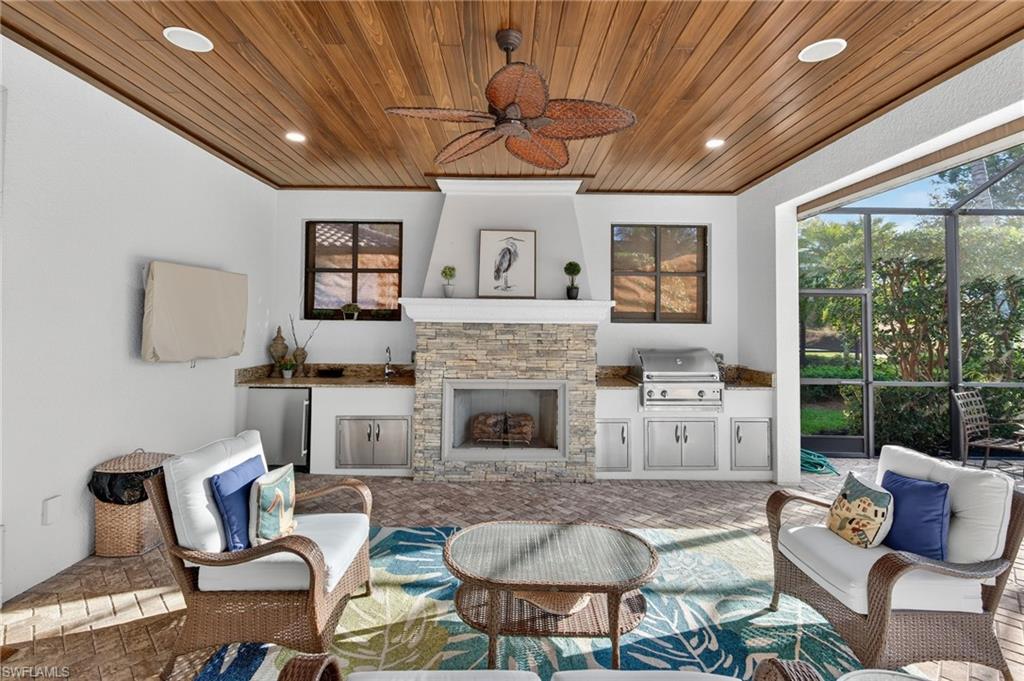 Discover refined living in Marsala at Tiburu00f3n, an exclusive enclave within the world-renowned Ritz-Carlton Golf Resort, Naples. Enjoy a front-row seat to captivating sunsets over the 15th fairway of Tiburu00f3nu2019s prestigious Black Courseu2014your private backdrop every evening. With immediate golf membership available, the coveted Tiburu00f3n lifestyle is yours from day one. This elegantly designed residence offers more than 3,400 square feet of luxury living, featuring 3 spacious bedrooms, a dedicated office, and 3.5 baths. The open-concept layout is ideal for both relaxed everyday living and effortless entertaining. Rich wood flooring flows throughout the main living areas, den, and primary suite, while expansive windows frame sweeping golf course views and fill the home with natural light. Plantation shutters throughout add timeless appeal. The gourmet kitchen is a chefu2019s dream, complete with soft-close wood cabinetry, gleaming granite countertops, high-end appliances, and a generous center island perfect for casual dining or hosting guests. A whole-house built-in audio system allows you to enjoy your favorite music indoors and out. Step outside to your private outdoor sanctuary, where a gas-heated pool and spa invite complete relaxation. The built-in outdoor kitchen and fireplace make entertaining a breeze, while lush landscaping creates the perfect sense of privacy. Built for lasting comfort and peace of mind, the home offers natural gas, impact-resistant doors and windows, and is ideally positioned in FEMAu2019s desirable X-zone (no flood insurance required).Located in one of North Naplesu2019 most sought-after communities, Marsala at Tiburu00f3n places you just minutes from pristine beaches, upscale shopping, fine dining, and the vibrant atmosphere of Seed to Table. Donu2019t miss this rare opportunity to own a home that blends timeless elegance, resort-style amenities, and the very best of Southwest Florida living.