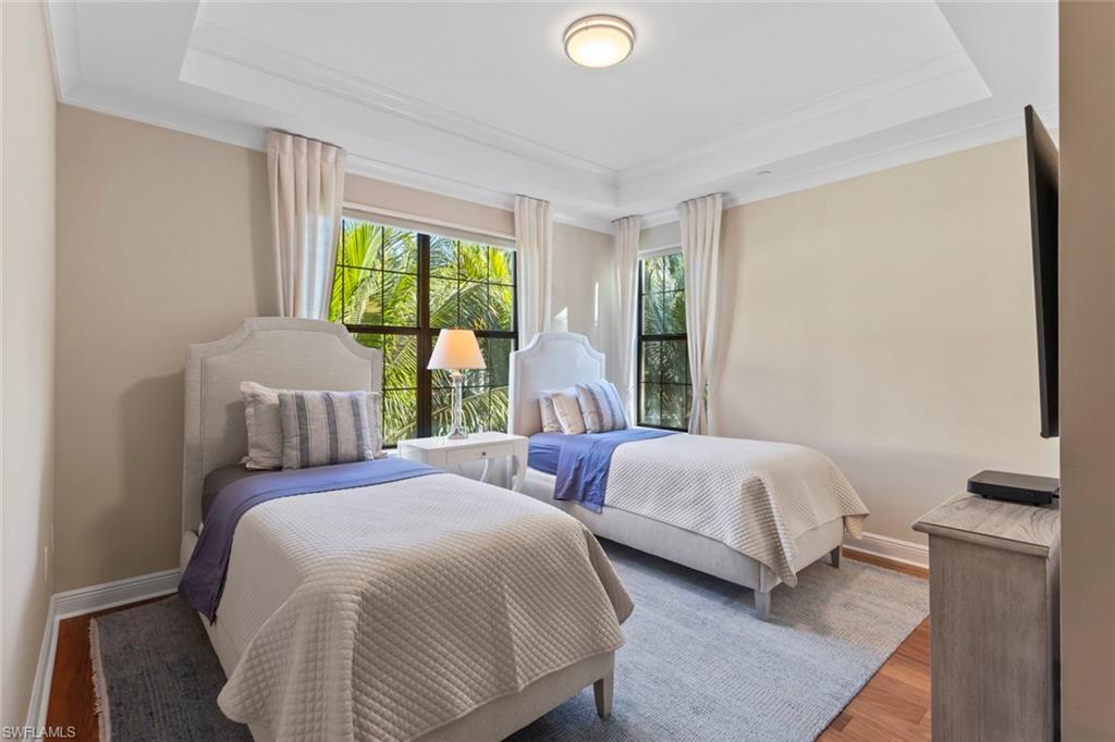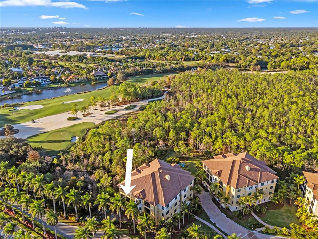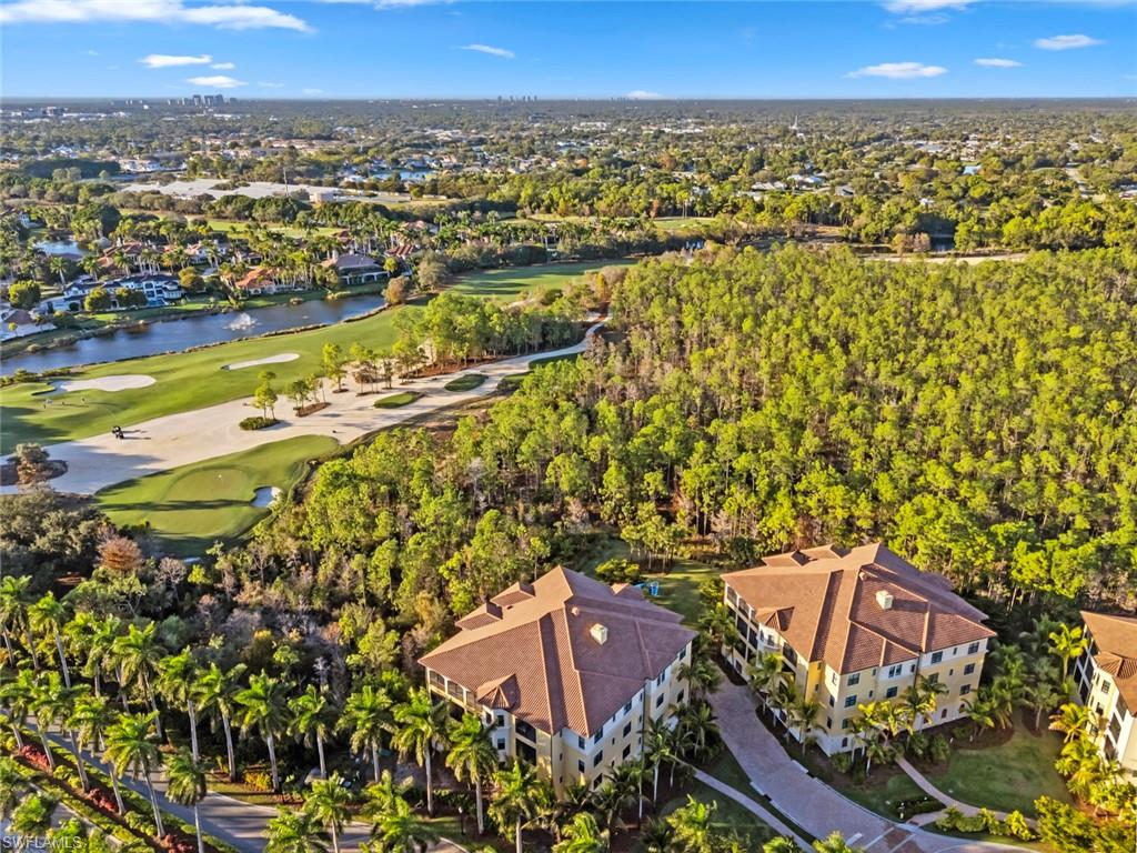 This penthouse style condo brings together a relaxed, sophisticated style with high end comfort. With top tier upgrades including designer wallpaper, fresh paint, and new light fixtures, the home feels exactly like an Architectural Digest model. The gourmet kitchen is built for entertaining and features quartz counters, a gas cooktop, and a custom bar with a wine and beverage center. All three bedrooms include their own private baths and walk-in closets with custom built-ins. Modern touches like battery powered motorized shades and contemporary French doors finish the space beautifully. The zero corner impact sliders slide completely open to a large lanai with great views of the 8th and 17th greens on the Tiburon Gold course. This is the only building in Esperanza where you get both southern sun all day and western sunset views in the evening. Unlike any other unit, this home is tucked into a screen of tropical palms, creating a secluded oasis that maximizes your sense of privacy. Located on a quiet cul-de-sac it offers a level of peace you usually only find in a house. It also comes with two assigned garage spots and a storage unit in the building. All within the world-class Ritz-Carlton Golf Resort community.