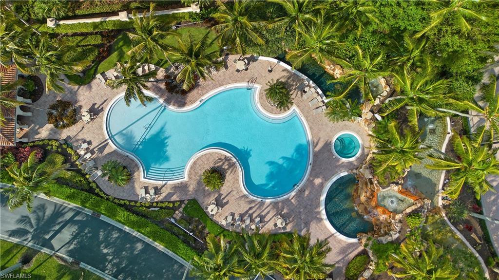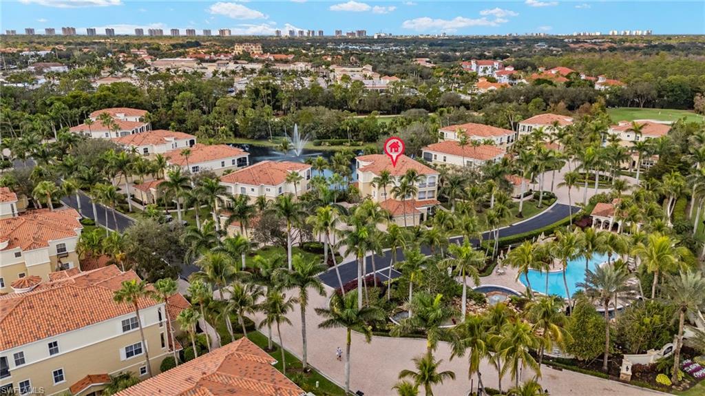 Location really matters, and this residence has it all! Western exposure, lake and fountain views, directly across from the resort style pool, and a short distance to the Tiburon Golf Club and Ritz-Carlton Hotel. Bolero, one of the most coveted and rarely available enclaves within The Ritz-Carlton Naples, Tiburu00f3n. This property offers a refined, neutral interior and captivating views adding to the effortless resort-style living.The generous open floor plan flows seamlessly from the main living areas to a spacious lanai, where tranquil lake and fountain views frame the 11th hole of the Greg Normanu2013designed course at Tiburu00f3n Golf Club. The expansive primary suite is filled with natural light from multiple windows and floor-to-ceiling sliders, creating a peaceful retreat. The en-suite bath is thoughtfully designed with dual vanities, a soaking tub, a large walk-in closet, and additional linen storage. The open dining area and well-appointed kitchen complete the main living space, ideal for entertaining or relaxed everyday living. Additional guest bedrooms (den easily a 3rd bedroom) and a full bath provide comfort and privacy for visitors.Living like a single-family home, this residence features direct access from the attached two-car garage, complete with epoxy flooring and a California Closets built-in storage system. Designed for those who value low-maintenance living without sacrificing luxury, Bolero offers a true outdoor oasis lifestyle.