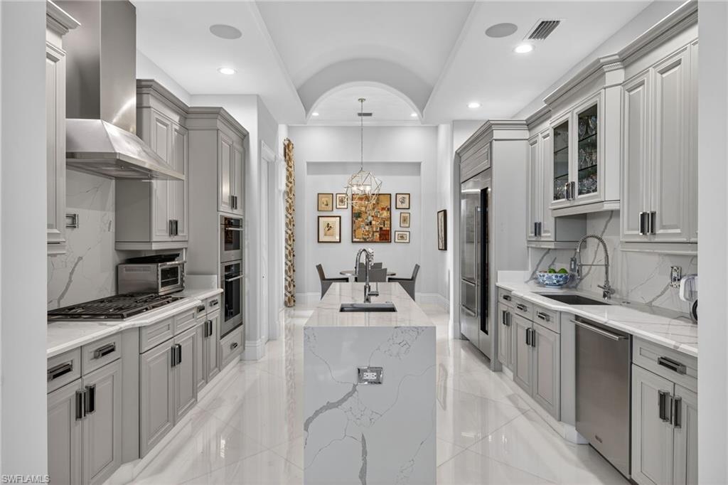 Welcome to the home you have been waiting for! Not a detail was missed in this stunning, completely remodeled single family home. 36` marble flooring welcomes you into the spacious dining room and salon. The beautiful kitchen features Wolf and Sub-Zero appliances. Enjoy refreshments while watching the sunset over the gorgeous landscaped yard with a meandering river and stone water feature. Expansive glass sliders frame the view to the remastered pool featuring mosaic tile, limestone pool deck, and beautiful outdoor kitchen. Other updates include; salt water pool, generator, newer roof, air conditioning, duct work, impact windows in the primary suite, and picture frame pool enclosure, just to name a few. This is the ideal location at Norman Estates, which is just a short distance to all the amenities that Tiburon golf club and The Ritz-Carlton Hotel have to offer. Including multiple restaurants, fitness, and spa. Truly a resort lifestyle. Tiburon is just 1.5 miles to premium shopping and restaurants at Mercato, and only 3 miles to Vanderbilt Beach. Golf memberships are available, but not required to live in the community. Don't miss this opportunity, these properties don't come around often!