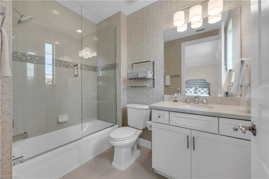 Esperanza at Tiburu00f3n u2013 Professionally-Decorated Turnkey-Furnished Top-Floor Luxury Residence with Golf Membership Immediately Available. Experience refined Naples living in this beautifully updated and Clive Daniel-decorated penthouse-level residence in the sought-after Esperanza at Tiburu00f3n, home to the Ritz-Carlton Golf Resort and two Greg Normanu2013designed championship golf courses. This immaculate three-bedroom, three-and-a-half-bath end unit combines sophisticated design with serene privacyu2014no units above and panoramic preserve views that provide tranquility from sunrise to sunset. An inviting open-concept great room features soaring ceilings, custom millwork, high-end artwork and designer finishes throughout. The chefu2019s kitchen offers white cabinetry, matching quartz countertops, high-end appliances, and a spacious island perfect for casual dining or entertaining. A formal dining area flows seamlessly to the expansive screened lanai, an ideal retreat for morning coffee or relaxing evenings surrounded by a lush tropical backdrop. The primary suite serves as a private sanctuary with lanai access, a large custom-fitted walk-in closet, and a spa-inspired bath with dual vanities, soaking tub, and frameless glass shower. Two guest suites, each with its own ensuite bath and walk-in closet, ensure comfort and privacy, while the den with a private balcony provides flexible space for work or relaxation. Additional highlights include wood and tile flooring, designer lighting, plantation shutters, a private elevator that opens directly into the residence, and hurricane protection provided by impact glass windows and doors, as well as storm screens out on the patio. Under building garage with two assigned parking spaces and private storage room provide convenience and security. Offered turnkey furnished, the home showcases a curated collection of high-end pieces balancing sophistication and coastal warmthu2014move right in and enjoy the Tiburu00f3n lifestyle. Residents of Esperanza enjoy resort-style amenities including a tropical pool and spa, grilling area, and private clubhouse. Optional Tiburu00f3n Golf Club memberships provide access to 36 holes of world-class golf, tennis, fitness center with personal trainers, spa services, concierge, and dining. Owners also enjoy privileges at both Ritz-Carlton resorts and a private shuttle to the beach with chairs, umbrellas, and towels provided. Ideally located in North Naples, just minutes from Mercato, Waterside Shops, white-sand beaches, and downtown Naples, this top-floor corner residence offers exceptional natural light, breathtaking preserve vistas, and a rare sense of single-family privacy within one of Naplesu2019 premier resort communities. Lives like a single-family home u2013 penthouse privacy, resort amenities, and timeless elegance in the heart of Tiburu00f3n.