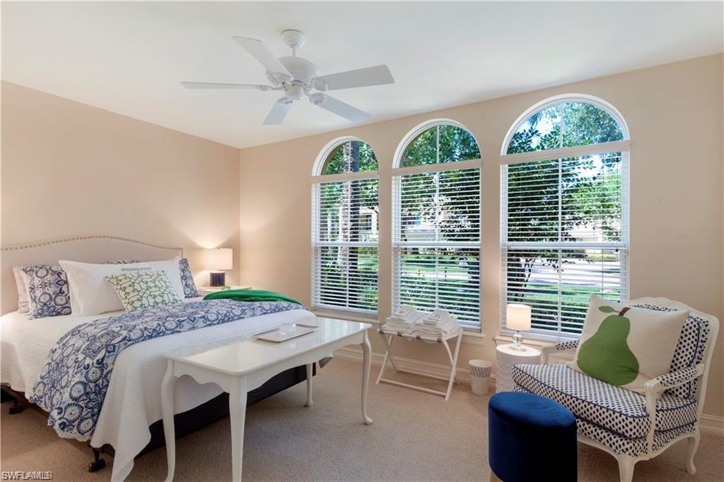 Beautifully decorated 1st floor 2 BR + den condo lives like a single-family home. The east-facing lanai overlooks a lake and the 3rd tee of the Greg Norman Gold Golf Course. A transferable SIGNATURE MEMBERSHIP IS AVAILABLE with your lease which gives you access to the Tiburon clubhouse, tennis, fitness, pro-shop, several dining options, and golf at a reduced rate. Enjoy the Reservoir Water Experience at the Ritz Carlton Golf Resort! This home has plenty of windows and natural light, an over-sized master suite, gorgeous kitchen with white quartz, gas range, all new appliances, and an attached 2 car garage. Walking distance to the community resort- style pool, Tiburon Clubhouse, and the Ritz-Carlton Golf Resort.