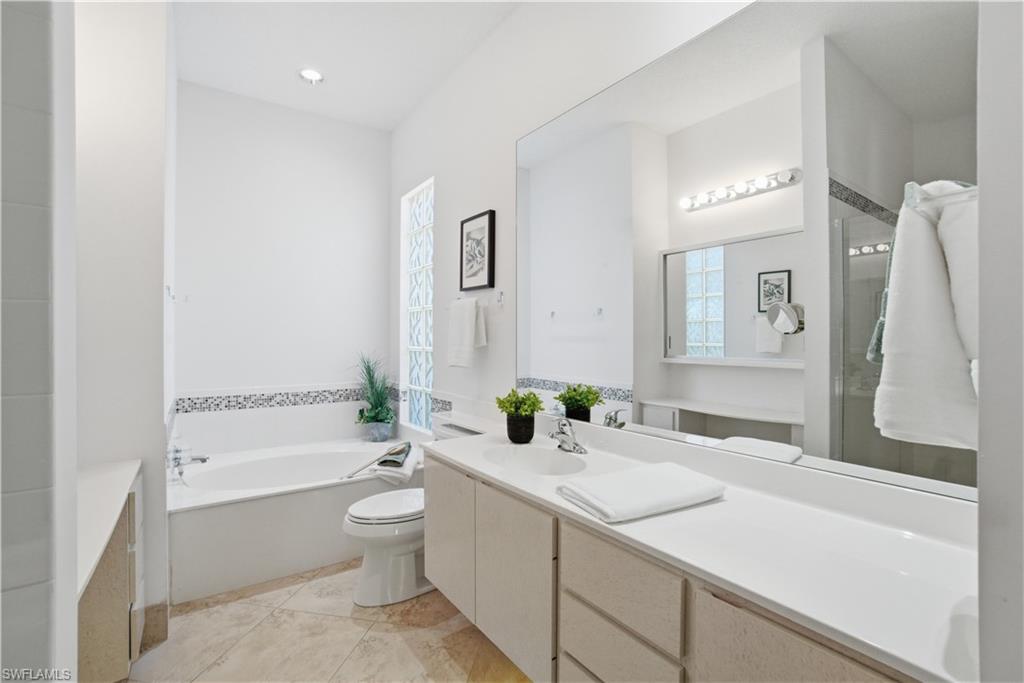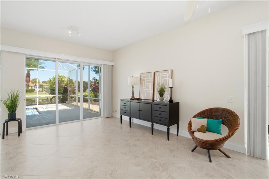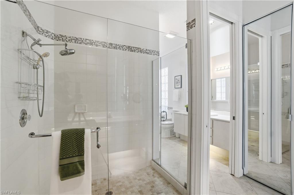 Beautifully updated EXTENDED OAKMONT MODEL with STUNNING LAKE VIEWS, offering 3 bedrooms + den and a private pool, located in the highly sought-after Village Walk community. This exceptional residence features a new tile roof (2019), electric storm shutters, a two-car garage, marbled tile flooring throughout, soaring ceilings, and a wide-open, airy floor plan. Abundant natural light fills the home through expansive windows and sliding glass doors. Step outside to the screened-in lanai, where a spacious pool and breathtaking lake views create the perfect setting for relaxing or entertaining. The spacious kitchen is well-appointed with newer KraftMaid white cabinetry, granite countertops, stainless steel appliances, and an industrial pull-down faucet. The primary suite offers private lanai access and a generous en-suite bath featuring a renovated glass-enclosed shower, separate soaking tub, and dedicated makeup vanity. One guest bedroom includes custom built-in cabinetry and a desk ideal for a home office or study space. Additional highlights include plantation shutters in the den and guest bedrooms, along with a newer front-loading washer and steam dryer. Village Walk offers an impressive array of amenities, including two resort-style swimming pools, a fully equipped fitness center with lap pool, pickleball and tennis courts, bocce courts, a community clubhouse with an active social calendar, an on-site Mediterranean restaurant, and miles of picturesque lakeside walking trails. Ideally located near world-class beaches, Mercato, and Waterside Shops, just minutes from Fifth Avenue South, and situated within an A-rated school district.