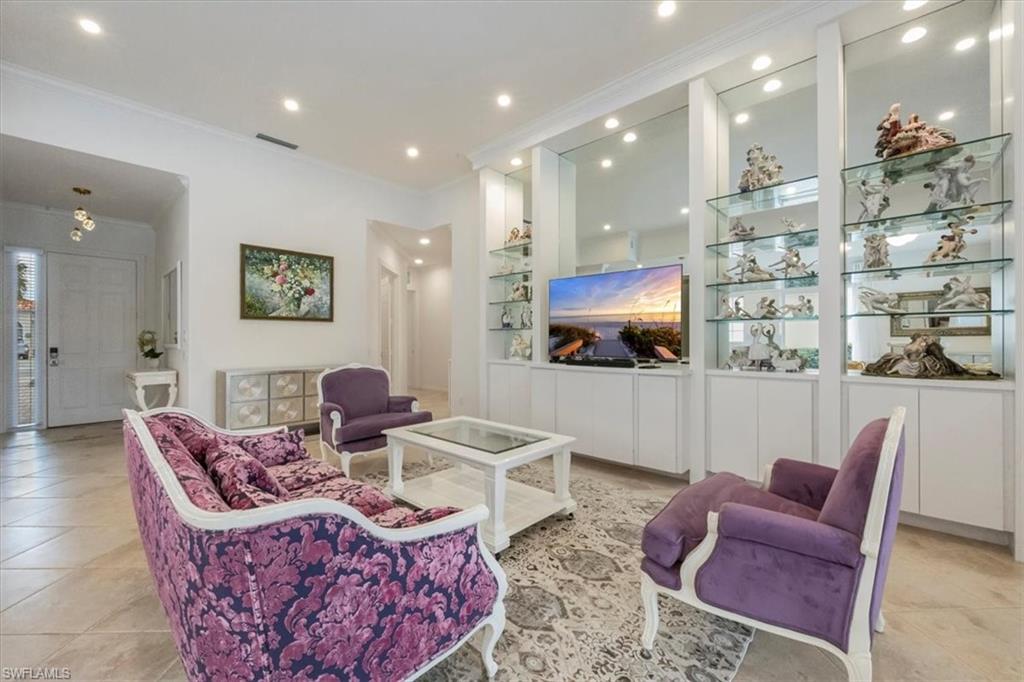 Sunset views and resort-style living in Village Walk in beautiful Naples, FL! Enjoy breathtaking sunsets every night from your own private, western-facing, solar-heated saltwater pool. This outstanding, reimagined Oakmont floor plan offers 3 bedrooms, a den/home office, 3 full baths, and a 2-car side-load garage with an epoxy floor and brick paver driveway. The stunning kitchen showcases custom cabinetry, quartz countertops, a freestanding island, and Cafu00e9 appliances - perfect for entertaining. The primary suite features generous closet space and a beautifully renovated bathrooms (2 primary bathrooms) highlighted by a striking tiled feature wall. Additional upgrades include 20-inch porcelain tile set on the diagonal, roof replaced in 2019, new AC in 2023, freshly painted exterior with the new hoa approved color pallet, crown molding, hurricane protection, and a custom built-in bar. The homeu2019s private setting backs to a cul-de-sac with no direct neighbor behind and is surrounded by lush landscaping and charming potted plants. Located in an interior section of the community, this residence offers peace and privacy while being close to everything. Village Walk is one of North Naplesu2019 most sought-after communitiesu2014just under 5 miles to Vanderbilt Beach and the shopping and dining at Mercato. Residents enjoy an active lifestyle with tennis, pickleball, a fitness center with lap pool, two resort pools, a restaurant, miles of scenic walking paths, and more!