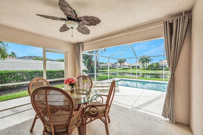 Village Walk of Naples, Available Immediately, Fantastic Canal View Extremely Relaxing! $500 Discount on All Applications Approved Before 11-20-2025! Beautiful Waterfront Extended Capri 2/2, 2123 ft. total, Price Listed is Annual Rental-Unfurnished ($3,495/mo), Seasonal Furnished (Minimum 4 months,$5995/mo) , Internet, TV and Lawn Care are Included in the Rent. Brand New Roof, Brand New Stainless Steel Kitchen, Fresh Paint , Private Pool with Screen Enclosure, Less Than 5 Minutes Walking Distance to the Community Town Center for Your Convenience, Brand New Laundry Appliances, Water/Canal View, Two Car Garage, Central A/C, 5 Ceiling Fans, 100% Completely Tiled, Beautiful Wall Unit, Fitness Center w/Machines, Tennis Courts, Pickleball, Bocce Court, additional 3 Community Pools, Hair Salon, Library, Restaurant, Jogging, Bike Path, and More! Please contact us for more information. We can be very Accommodating! This property can be rented for as little as 4 months as per HOA, Owner pays for basic Internet/Cable TV, Yard Maintenance Pets allowed with approval. Thank You! , Owner/Agent MLS