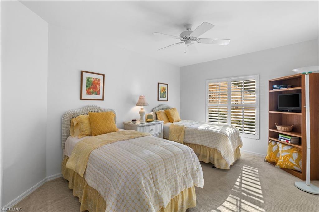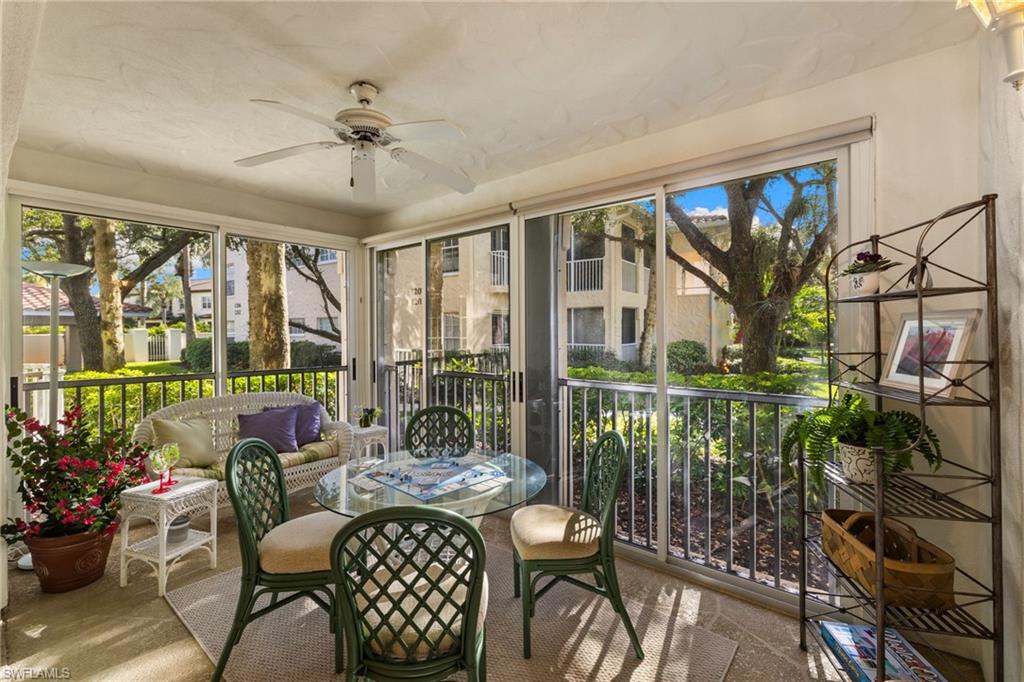 First-floor, no-stairs condo in charming Tuscany at The Vineyardsu2014a tranquil enclave nestled among mature landscaping. Enjoy a glass-enclosed lanai with peaceful views and glimpses of the lake. This 2-bedroom + den, 2-bath home offers a spacious split-bedroom floor plan with excellent privacy for guests and flexible living. The den is currently used as a guest space and also works beautifully as an office or hobby room. Storage is exceptional with two walk-in closets plus a foyer storage closet. Freshly painted with newer carpet (recently cleaned) and sold furnished/turnkeyu2014your Naples getaway is ready to enjoy. Convenient carport parking nearby, with plenty of guest parking available.Tuscany offers a welcoming lifestyle with a clubhouse, pool, BBQ/grilling area, and bike storage. Optional membership opportunities are available at Vineyards Country Club, featuring golf, tennis, dining, and a 15,000 sq. ft. Wellness Center & Spa with a fitness center, cafu00e9 dining, spa/salon services, and an outdoor half-Olympic saltwater lap pool. (Golf membership is optionalu2014not mandatory.)Ideally located near Crossroads Market, across from Physicians Regional Medical Center u2013 Pine Ridge, and close to I-75 for quick access to RSW International Airport. Enjoy a short drive to Vanderbilt Beach and a short drive to Downtown Naples & Fifth Avenue South for dining, boutiques, galleries, and entertainment.