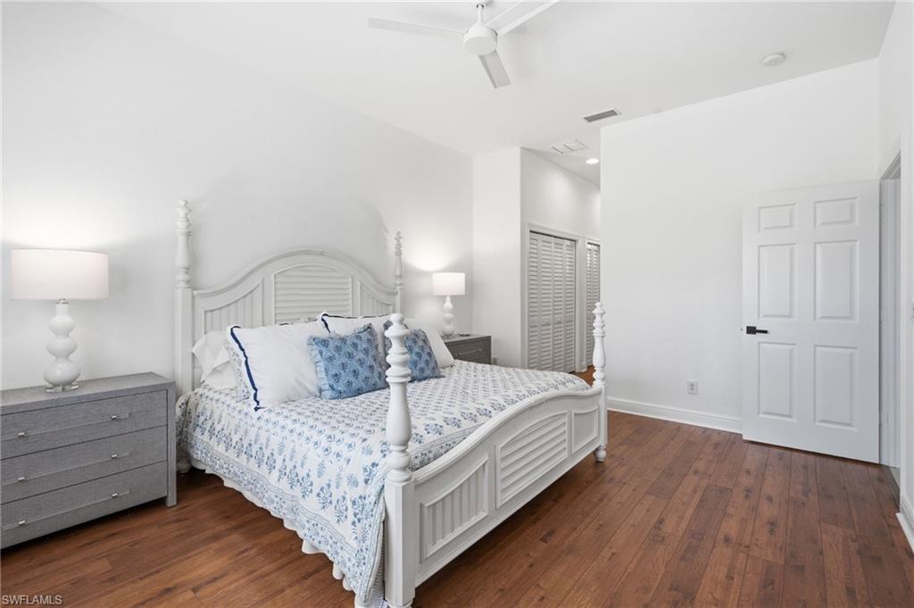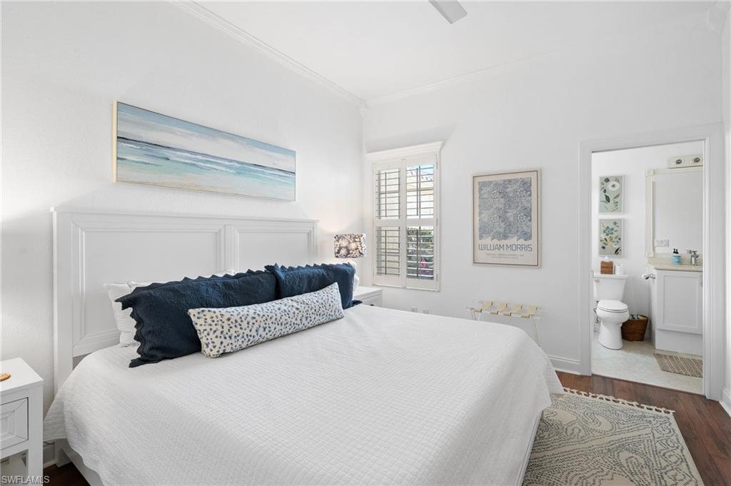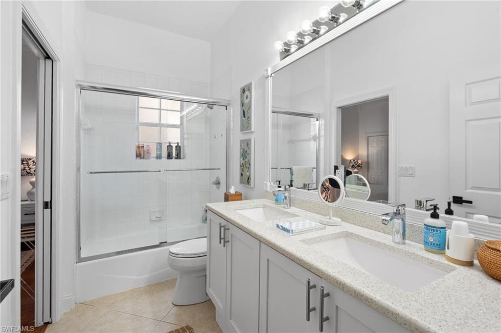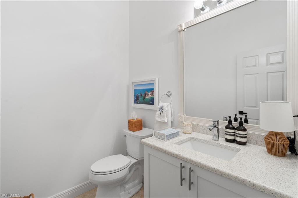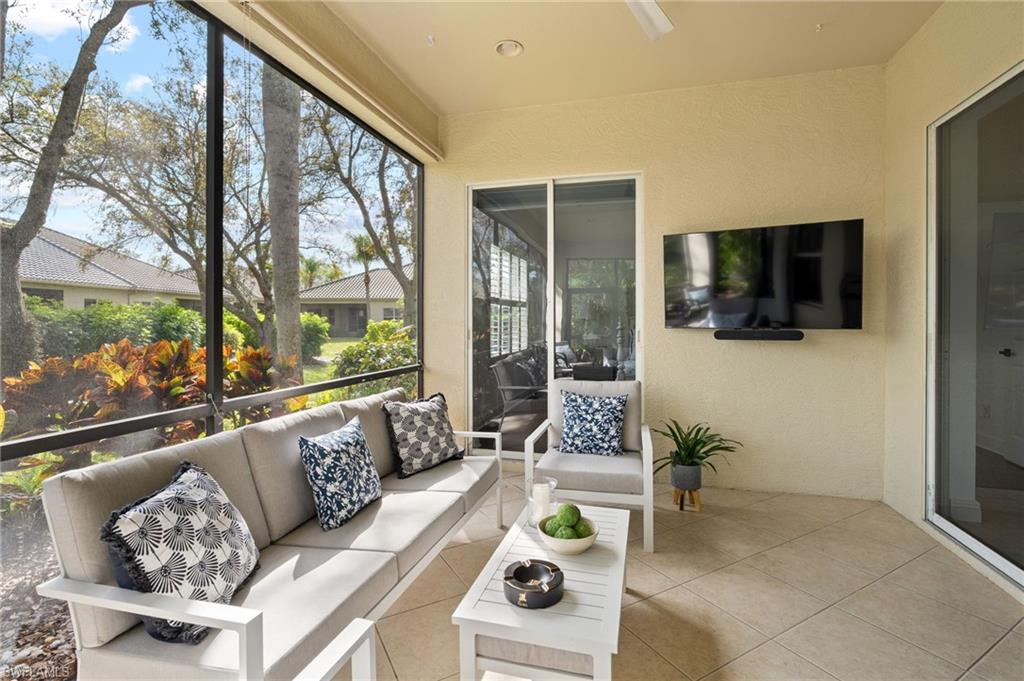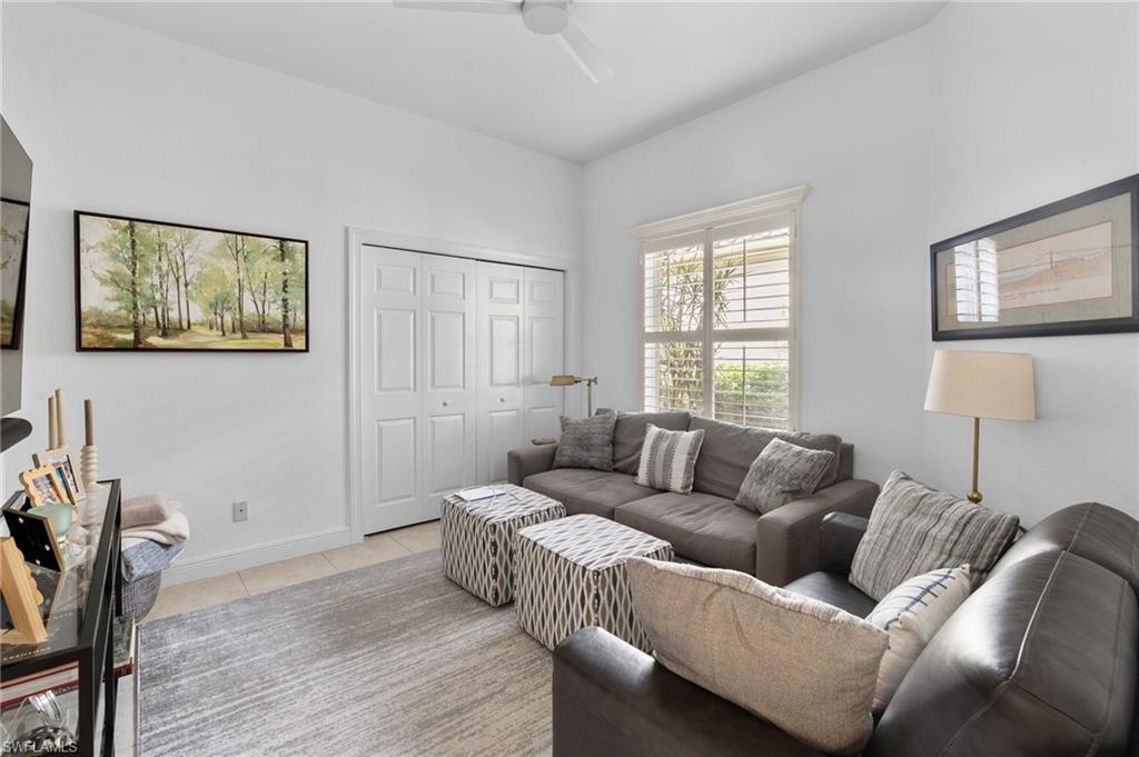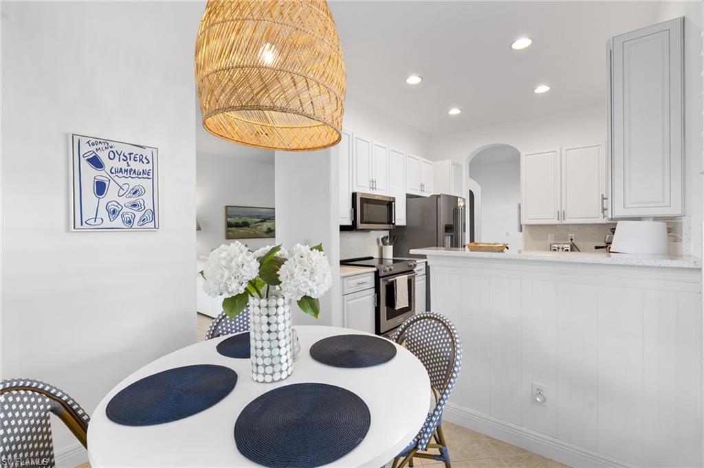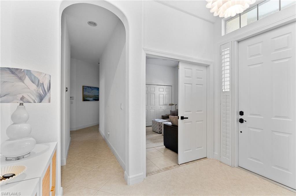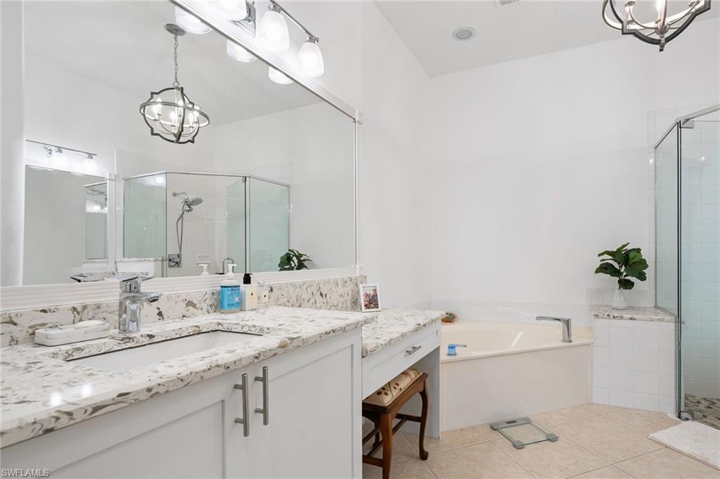 Welcome to this light-filled coastal contemporary villa in the charming community of Villa Vistana at The Vineyards. This inviting 4-bedroom, 2.5-bath residence features soaring 10-foot ceilings, plantation shutters throughout, and a thoughtfully arranged layout designed for comfortable living. The bright kitchen is beautifully appointed with quartz countertops and backsplash, Cornerstone cabinetry, a breakfast bar, and a separate breakfast nook for casual dining, while a formal dining room offers space for more traditional gatherings. Tile flooring runs throughout the main living areas, kitchen, and fourth bedroom/den, while the bedrooms feature warm engineered wood flooring. Designer light fixtures add a refined finishing touch. Walls of windows fill the home with natural light and open to a tiled, screened lanai overlooking lush, mature landscapingu2014an inviting spot for morning coffee or evening relaxation. Additional highlights include generously sized bedrooms and a spacious two-car garage. Ideally located behind the gates of The Vineyards and just minutes from Mercato, premier shopping and dining, and the sun-drenched Gulf beaches, this Villa Vistana home offers a wonderful combination of comfort, style, and location.