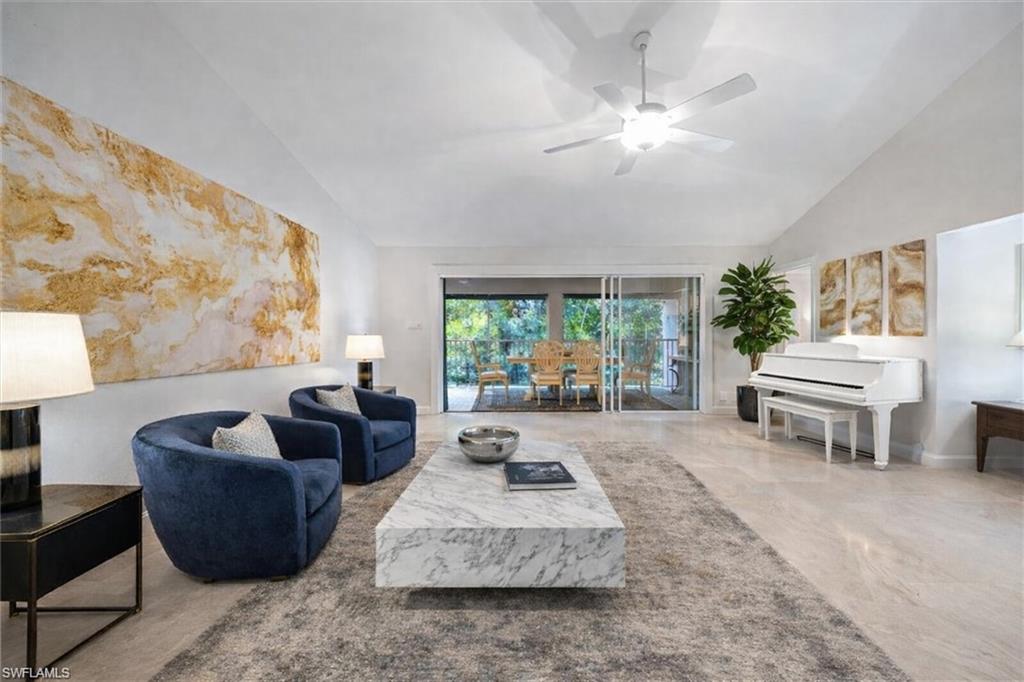 Luxury Naples coach home in the gated enclave of Tra Vigne at The Vineyards. This beautifully maintained 2-bedroom + den, 2.5-bath residence lives like a single-family home with a grand staircase entry, open floor plan, vaulted ceilings, and abundant natural light. The updated kitchen features white cabinetry, solid-surface countertops, and a Halo Water Treatment System, ideal for entertaining and everyday living. Plantation shutters and elegant finishes enhance the interior, while the screened tiled lanai overlooks tranquil tropical landscaping for relaxing outdoor living. The spacious owneru2019s suite offers a spa-style bath with soaking tub, walk-in shower, dual vanities, and a large walk-in closet. A guest bedroom and flexible den/home office provide additional space for visitors or remote work. Highlights include impact windows, one-car garage, driveway parking for two, ample guest parking, and a new RHEEM Air Conditioning system installed in Aug 2025 with transferable 10-year warranty. Residents enjoy lush manicured grounds and four resort-style pools, with optional Vineyards Country Club membership offering championship golf, tennis, pickleball, fitness, spa, and dining. Minutes to Naples beaches, Fifth Avenue South, shopping, and dining. Luxury, location, and lifestyle in the heart of Naples. Optional golf membership provides access to additional club amenities. This is where you want to live and play. Welcome