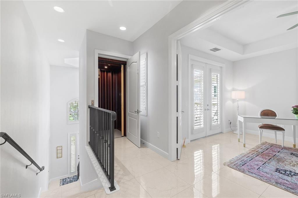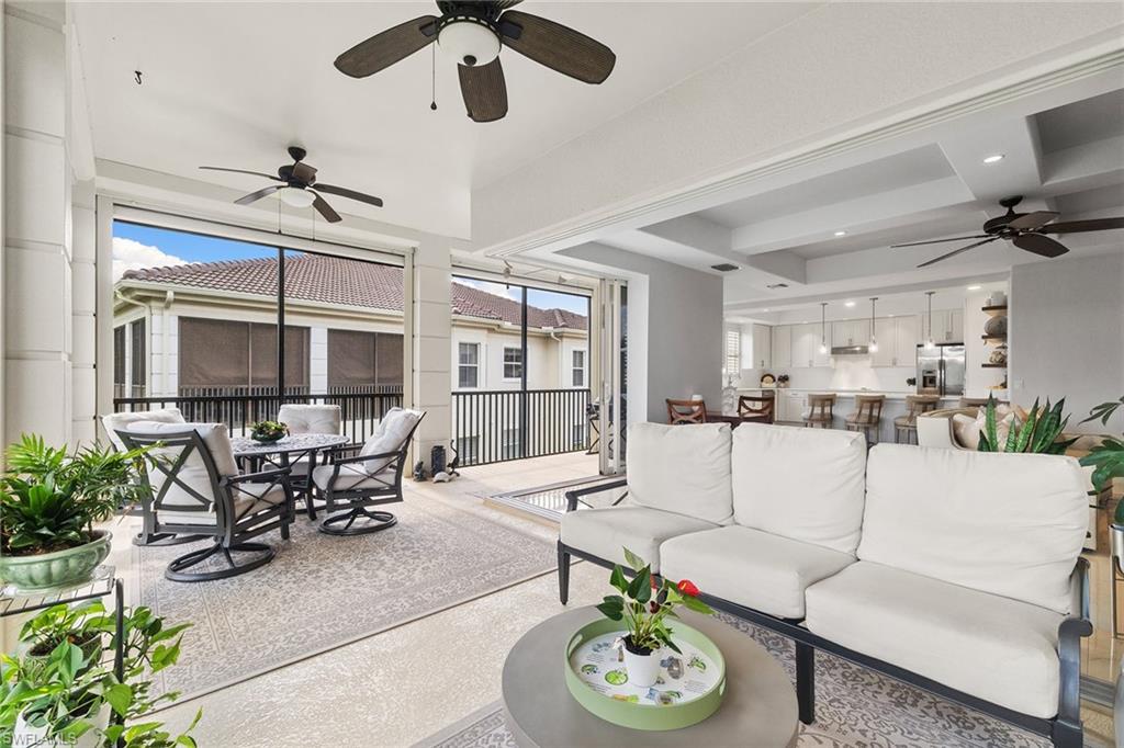 Welcome to Avellino Isles, where luxury, comfort, and resort-style living come together in this stunning three-bedroom plus den, 3.5-bath residence with a private elevator and an impressive 3,282 square feet of living space. This beautifully updated condominium features an elegant renovated kitchen, new storm shutters and an expansive screened balcony offering serene treetop views, ideal for relaxing or entertaining. Additional enhancements include epoxy garage floors, added storage shelving in the garage, and updated air-conditioning units and water heater, providing peace of mind and long-term value. The spacious floor plan includes a generous primary suite, two en-suite guest rooms, and a versatile den ideal for a home office or media space. Avellino Isles is dog friendly, and its peaceful setting is enhanced by the exceptional amenities available at the Vineyards Country Club, where membership is optional, featuring championship golf courses, a world-class fitness center, spa, tennis, pickleball, and casual and fine dining options. This home is ideal for those seeking an active, upscale Naples lifestyle with the convenience of maintenance-free living and resort amenities just moments away.