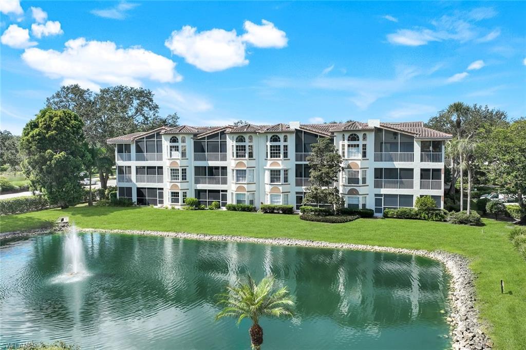 This unit has tons of updates and upgrades. Most furniture can be included if buyer chooses. Wonderful spacious residence with serene coastal decor that creates a calm retreat with sparkling lake views. There are 2 screened lanais allowing coastal breezes to flow through. The beautiful luxury vinyl wood plank flooring has warm tones. The new kitchen has white shaker cabinetry, quartz counters, stainless steel appliances and a tray ceiling with accent lighting and crown molding. This modern design has the popular open shelving concept and glass cabinetry. A large pantry closet has enough extra space for storing your small appliances too. The owner's suite has lovely lake views, large walk-in closet and vanity with dual sinks, quartz counters and a separate shower and soaking tub. The guest bedroom has ample closet space and a refreshed bathroom with new cabinetry and quartz counters. The main lanai has storm shutters and gorgeous lake views. The second lanai off the kitchen has colorful skies at sunset and has storm shutters too. It is an easy walk to the community pool and hot tub. Chardonnay is nestled in the highly sought after neighborhood of the Vineyards. Close to a large variety of shopping, dining, Naples' white sandy beaches, medical facilities and I-75 for traveling. This one checks all the boxes.