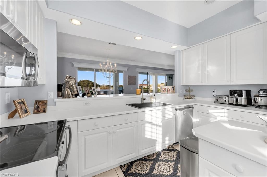 Welcome to Vintage Reserve at The Vineyards, a meticulously renovated top-floor coach home that boasts over 2,300 square feet of luminous living space. This spacious residence features three bedrooms and three fully equipped bathrooms. The soaring ceilings, ornate crown molding, and open-concept design create an inviting ambiance, complemented by a contemporary kitchen equipped with white cabinetry, stainless steel appliances, and sleek countertops. The expansive great room seamlessly transitions to a large screened lanai, offering breathtaking views of the tranquil preserve. The primary suite includes a walk-in closet and a spa-inspired bathroom with dual vanities. Additional amenities include a two-car garage. Nestled within the gated enclave of The Vineyards, residents enjoy access to scenic walking paths, tranquil lakes, and the exclusive opportunity to join Vineyards Country Club. This prestigious club offers two championship golf courses, tennis, pickleball, fitness center, spa, pools, and a diverse dining experience, including both casual and fine dining establishments. All these amenities are conveniently located within minutes of Naplesu2019 renowned shopping, dining, and pristine white-sand beaches.