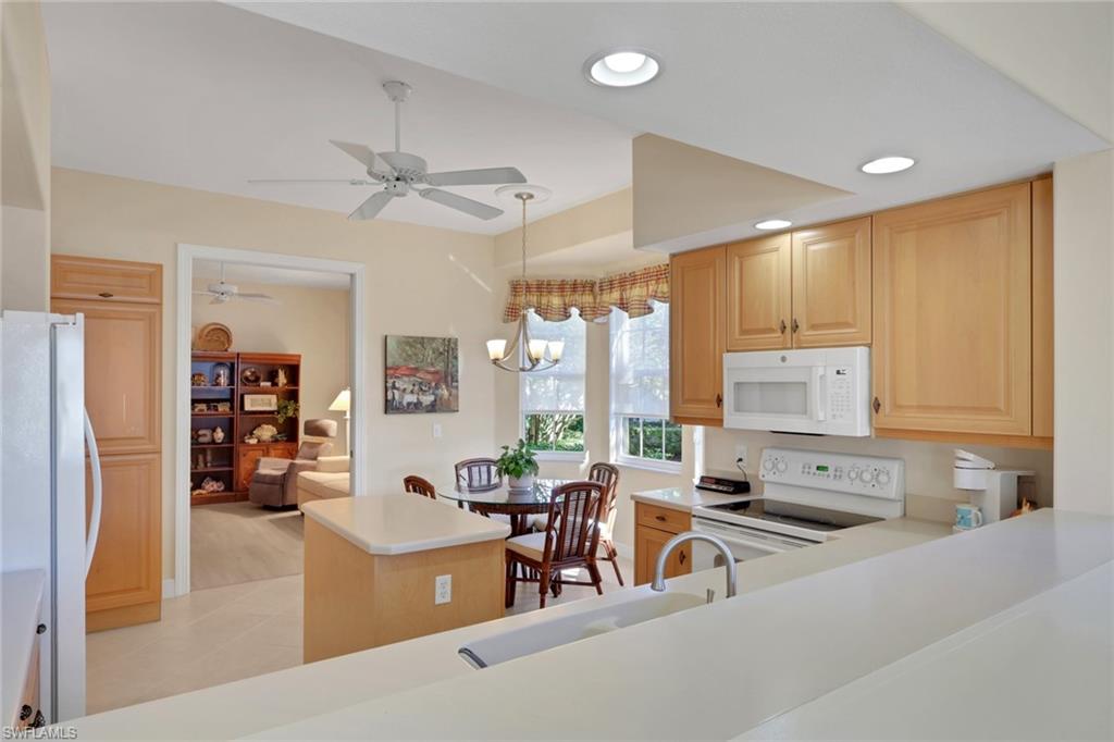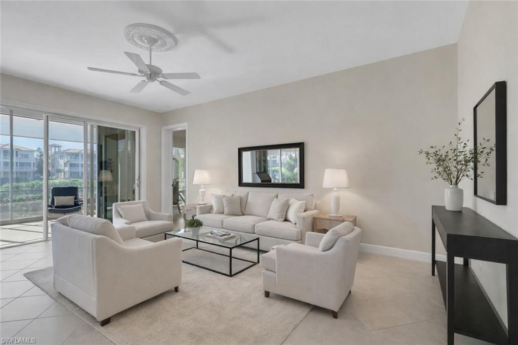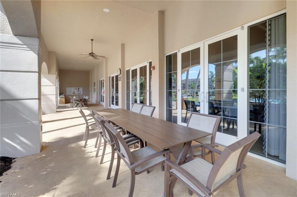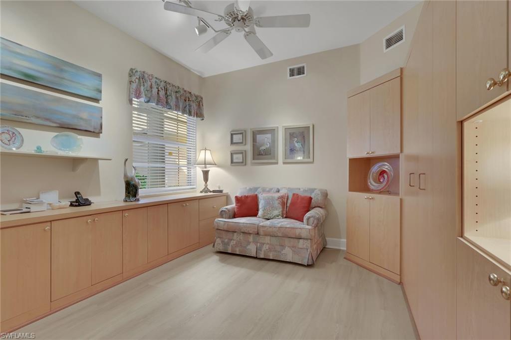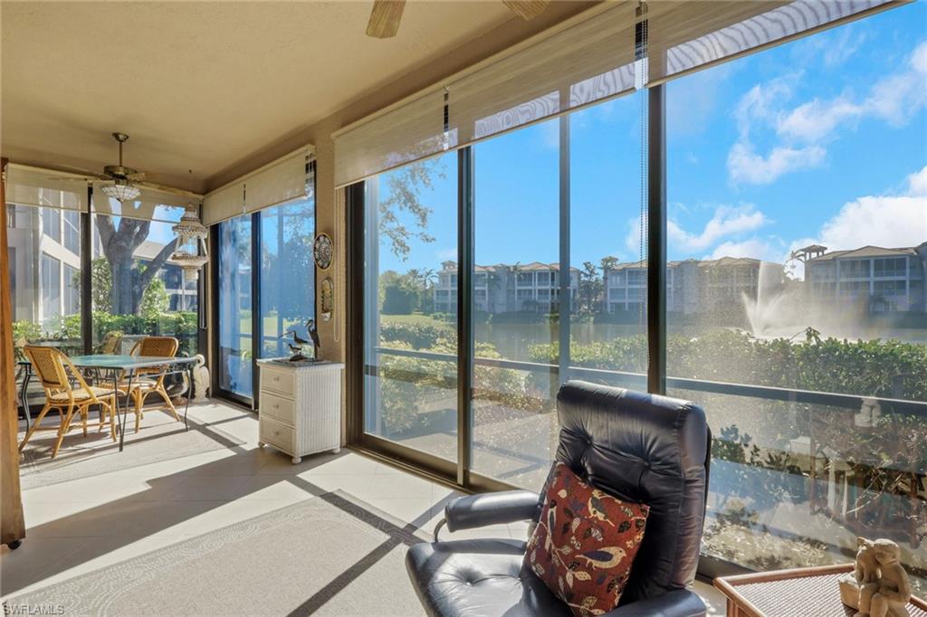A gorgeous lake and fountain view can be enjoyed from your expansive, all-weather lanai in this ground floor end unit. The lanai is south facing and enclosed with storm glass sliders and tile floor, creating an outdoor living/dining space that is usable rain or shine. The split floor plan features two bedrooms plus den/two full bathrooms. The guest bedroom has custom built-in storage, Murphy bed, and luxury vinyl flooring-heightening best use of the space. This one owner unit has been meticulously maintained and features newer A/C (2021) and New Hot Water Heater (2026). An active lifestyle is fully complemented by the communityu2019s newly re-modeled resort-style community clubhouse with fitness center, library, full kitchen, and pool area featuring three rock waterfalls and three gas grills! Regency Reserve in Vineyards - where luxury living meets every-day comfort!