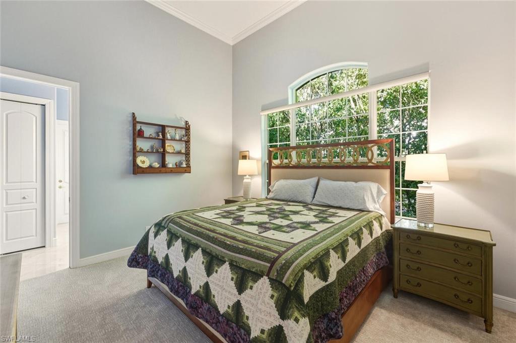 Fully renovated estate in The Vineyards with Award-Winning Golf Views! This fully modernized estate residence in The Vineyards offers western exposure, seamless indoor-outdoor living, and exceptional architectural detailing. This home has been thoughtfully updated with elegant furnishings, meticulous attention to detail, and improvements that are sure to impress the most sophisticated buyer. Captivating views of The Vineyardsu2019 golf course greet you as you enter through double arched, custom-made wrought iron doors with glass panels. Step into a grand foyer and formal living room featuring marble floors, soaring 18-foot coffered ceilings, and a marble gas fireplace, complemented by 14-foot ceilings and elegant lighting. The chef-inspired kitchen is the heart of the home, with a large central island, high-end stainless steel appliances, quartz countertops, wood cabinetry, and a built-in pantry, all overlooking the great room where floor-to-ceiling zero-corner sliding glass doors connect seamlessly to the outdoor living area. The covered outdoor space features a wood-detailed ceiling, outdoor kitchen, brick pavers, specialty lighting, ceiling fans, and electric hurricane shutters - providing abundant space for entertaining and relaxed everyday living. The primary suite is an owneru2019s retreat, with wood flooring, a coffered ceiling with integrated lighting, a private sitting area and dual walk-in closets. French doors and zero-corner sliding glass doors open directly to the outdoor living area, while the spa-inspired primary bath is filled with natural light and enjoys serene views of the front privacy garden. Additional highlights include three guest bedroom en-suites, a formal dining room, an elegant bar and wine room with wine chiller, a spacious den with custom built-ins, a large laundry room with a picture window, a whole-house propane generator, and an epoxy-finished garage floor. The Vineyardsu2014one of Naplesu2019 largest country club communitiesu2014renowned for award-winning golf with two 18-hole championship courses, wellness amenities, fine dining, hospitality, and an active social calendar that defines the lifestyle.