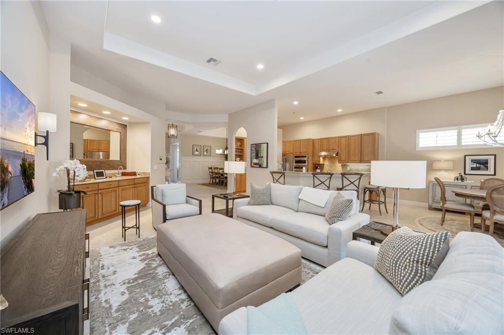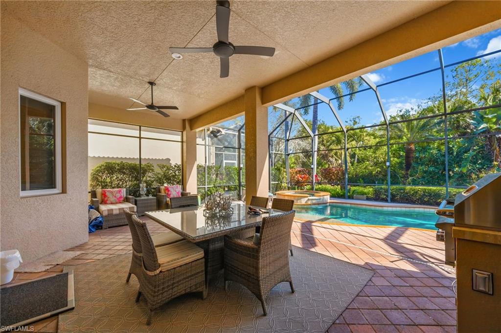 Hammock Isles in The Vineyards!This beautifully maintained single-family residence offers three bedrooms plus a den, three full baths, and a two-car garage. Designed for effortless indoor-outdoor living, the home features a pavered, screened lanai with pool, spa, outdoor kitchen, and a covered area ideal for relaxing or outdoor dining. Perfect for entertaining!The spacious great-room floor plan is complemented by neutral finishes and du00e9cor, creating a light, bright, and move-in-ready home. Quality craftsmanship and thoughtful upgrades are evident throughout, including tray ceilings, wainscoting, plantation shutters, and updated light fixtures. Glass front doors invite abundant natural light, while serene, private garden views provide a peaceful backdrop.Additional features include electric hurricane Kevlar screens, offering added security and peace of mind.Membership at the Vineyards Country Club is optional and offers an exceptional array of amenities, including 36 holes of championship golf, 12 Har-Tru tennis courts, pickleball, bocce, a resort-style pool and spa, an outdoor bar, and a state-of-the-art wellness center featuring a fitness facility, cafu00e9, halotherapy salt room, saltwater lap pool, and full massage and salon services.