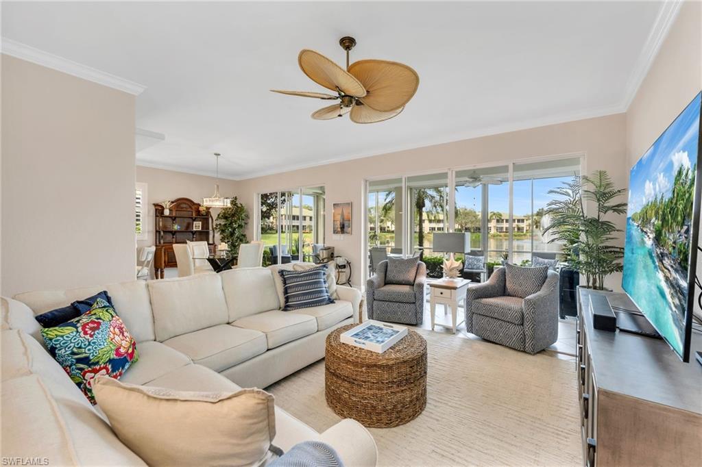 Coastal Calm Meets Effortless Living in The Vineyards! This highly desirable, rarely available, well-maintained first-floor end unit in Vintage Reserve could be yours! Offering 2+den, abundant natural sunlight, generous living space, and a gorgeous long lake view with fountain and sunset vistas, this home captures the essence of relaxed Naples living. Step inside and feel the calm of the coastal-inspired color schemeu2014neutral flooring, soft tones, and tranquil finishes that create a sense of serenity throughout. The spacious great room flows effortlessly to the sunny, oversized screened lanai, the perfect place to unwind, entertain, or simply take in peaceful lake and sunset views. For added peace of mind, this home is equipped with electric hurricane shutters for effortless storm protection.The generous primary suite is a private retreat, complete with two closets, dual vanities, and soothing views to start and end your day. Guests will appreciate the separate suite with its own full bath, offering both comfort and privacy. Thoughtful details include two linen closets, under-stair storage, newer appliances and systems, and a 2-car garageu2014all designed for easy, effortless living. Outside your door, indulge in the amenities of Vintage Reserve, including a renovated clubhouse, heated community pool and spa, and lush, beautifully maintained grounds. Vineyards Country Club offers 36 holes of championship golf, two pro shops, lighted Har-Tru tennis courts and pickleball courts, resort and lap pools, wellness center and spa, as well as 38 sparkling lakes, and 32 acres of parks. Families and residents appreciate the miles of bike and walking paths connecting to Vineyards Elementary School and Crossroads Market Center, while Ave Maria Universityu2019s School of Law and the world-renowned Physicians Regional Medical Center bring education and healthcare right into the community and all located in the heart of North Naples, just minutes from world-class dining, shopping, and white-sand beaches.Discover a place where every day feels like a getawayu2014your relaxed Naples retreat awaits