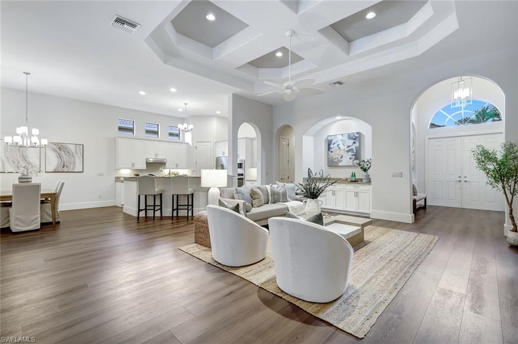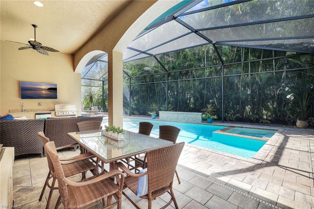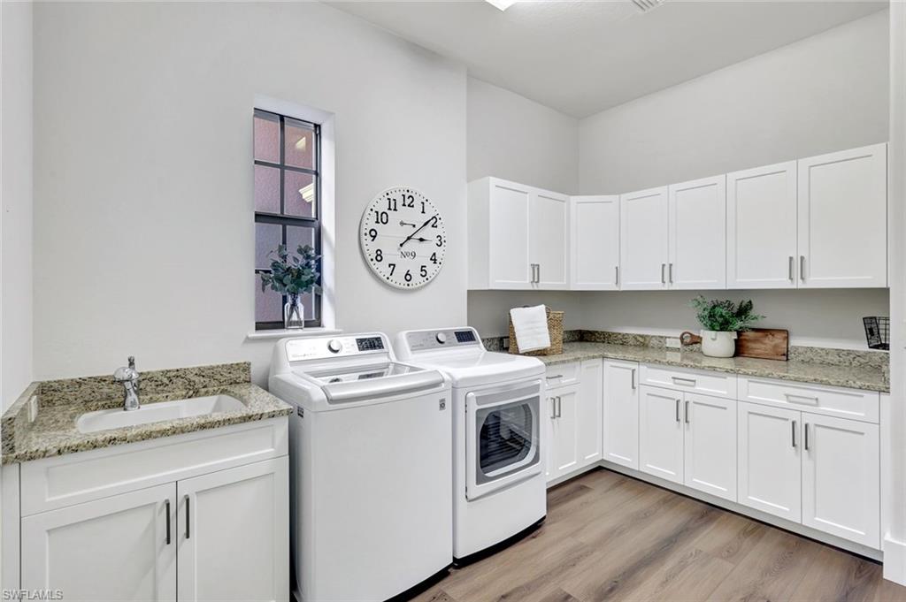 Hammock Isles at the Vineyards, 2015 build, one of the newest in the community. Bright, open layout with new luxury vinyl plank waterproof flooring and baseboards.The kitchen offers recently upgraded appliances, an eat-in area, and a pantry. A well-appointed laundry room includes a 2022 washer and dryer, utility sink, custom cabinetry, and generous granite counter space. Two guest bedrooms feature cozy carpeting and plantation shutters.The primary suite is a retreat with a walk-in closet and a spacious bath with glass-enclosed shower, jetted tub, and a custom vanity with granite.Enjoy easy indoor-outdoor living on the screened lanai with pool and spa, LED lighting, and a built-in grill station with granite. Pool and spa pumps have been replaced. Additional updates include an oversized water heater, refreshed garage and front doors, and updated garage door springs and keypad.Vineyards amenities include a beauty salon and spa, biking and jogging paths, pickleball, bocce, tennis, clubhouse, lap pool, fitness centers, golf with putting green, play area, restaurant, sauna, and nearby shopping. Private memberships available.Move-in ready, beautifully maintained, and ready for you.