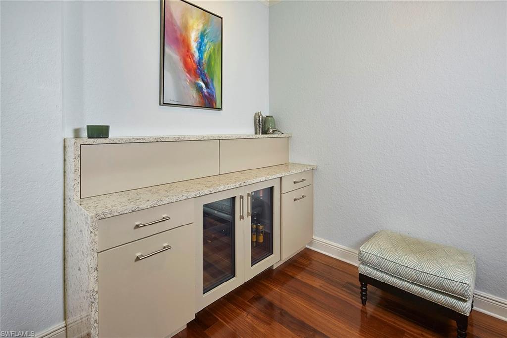 This charming Catalina model garden home with three bedrooms, two full baths and two-car attached garage, is in quiet Vistana Villas, a private enclave of just 64 homes in The Vineyards. Comfortable, flexible floor plan with large open great room area, split bedrooms and French doors to a den with a closet. The galley kitchen with light cabinets, backsplash and stainless steel appliances has a cozy breakfast nook. Beautiful Brazilian hardwood flooring in main living areas, plantation shutters throughout, crown molding, remodeled bathrooms and newer lighting. Primary bedroom suite is spacious with large windows and lanai access, double dual closets, separate granite counters and sinks, seamless shower and corner soaking tub. Guest bedroom has direct guest bath access with marble counter, upgraded cabinet and seamless shower. The primary suite, breakfast nook and wide lanai have secluded, mature tropical preserve views. Separate formal dining with large open great room. Electric vehicle charging in garage. The Vineyards offers optional golf and social memberships, not mandatory, offering exceptional amenities including two 18-hole golf courses, multiple dining options, pools, tennis, pickleball courts and wellness center with spa. The north Vineyards location is convenient to the white sandy beaches, many medical facilities and shopping at Mercato, Waterside Shops and 5th Avenue!