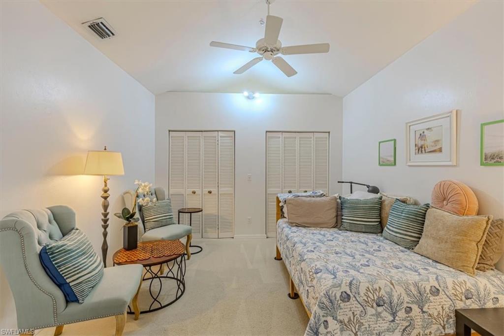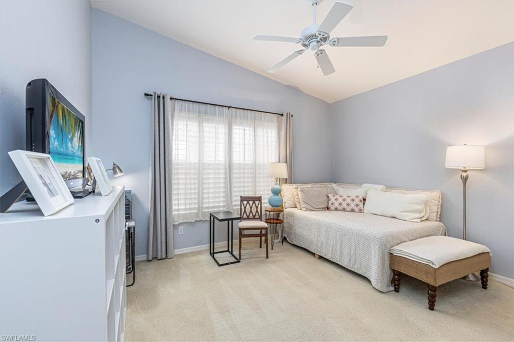 Rarely available top-floor residence in Chardonnay at The Vineyards! This bright and spacious three-bedroom, two-bath condo features vaulted ceilings and a thoughtfully designed floor plan filled with natural light.The expansive living and dining areas flow seamlessly into the kitchen with granite countertops, white cabinetry, and matching appliances, creating a welcoming space for everyday living and entertaining. The primary suite offers a generous layout with beautiful bay windows, abundant natural light, and an en-suite bath with a frameless glass shower. Guests will appreciate the privacy of the split-bedroom design and the well-appointed guest bathroom. The 3rd bedroom can easily function as a third bedroom, home office, or additional guest space.Enjoy the Florida lifestyle with two screened lanais u2014 an eastern-facing front lanai perfect for morning coffee and a western-facing lanai overlooking the community pool and pond, ideal for relaxing sunsets.Additional features include covered carport parking, a private storage unit, and convenient elevator access to the third floor. Furnishings are negotiable, offering the opportunity for a seamless move-in and the ability to begin enjoying the Naples lifestyle immediately.This home enjoys a truly exceptional location adjacent to Vineyards Community Park, home to a variety of outdoor activities, walking paths, community events, and recreational spaces. Located in one of Naplesu2019 most convenient locations, residents are just minutes from shopping, dining, Physicians Regional Hospital, and the Gulf beaches. Easy access to I-75 provides a quick drive to RSW International Airport, making travel simple for both seasonal and full-time residents.Optional membership to Vineyards Country Club offers access to 36 holes of championship golf, tennis, pickleball, a world-class wellness center and spa, and a vibrant social calendar.A wonderful opportunity to enjoy the Vineyards lifestyle in a spacious top-floor residence.