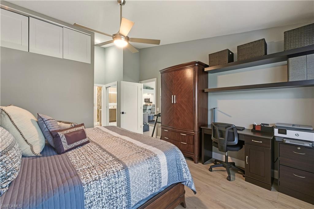 Clubside Reserve at The Vineyards u2013 Second-Floor End-Unit Coach Home. Experience refined living in this exceptional coach home, complete with a two-car garage. This thoughtfully designed and completely refashionedresidence offers three bedrooms plus a den, three full baths, open layout enhanced by numerous custom upgrades. Positioned uniquely, the home enjoys added privacy and tranquil surroundings with lake views. The enclosed lanai with triple sliding glass doors creates an expanded living area with additional interior square footage. The renovated kitchen and primary bath showcase quality finishes, complemented by crown molding and custom window treatments, adding timeless elegance and architectural detail. Thoughtful design elements throughout ideal for both entertaining and everyday comfort. Residents of Clubside Reserve enjoy access to a clubhouse featuring and swimming pool & spa, within a welcoming and vibrant community. This is a rare opportunity to own a truly distinctive residence in one of The Vineyardsu2019 most desirable neighborhoods. A must-see property.