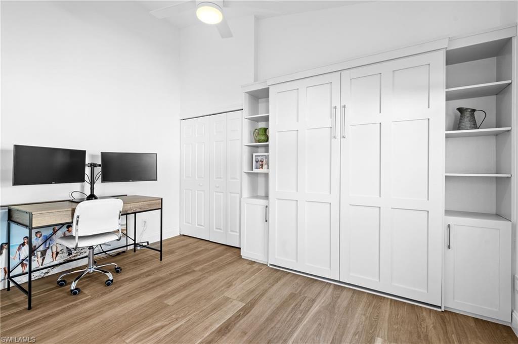 COMPLETELY RENOVATED u2013 3 BEDROOMS / 2 BATHS u2013 HURRICANE RESISTANT DOORS & WINDOWS! This stunning Naples home has been fully renovated and thoughtfully updated to combine modern style with functional living. The open layout features high ceilings throughout, a gourmet kitchen with new maple cabinets, quartz countertops, and a complementary backsplash, plus brand-new Whirlpool appliances. The primary bedroom is a true retreat, boasting a large bay window and a custom-designed closet for an organized, efficient layout. A guest room/office includes a custom-built Murphy bed, providing flexibility for work-from-home or overnight guests. Additional updates include new flooring, fans, and lighting, fresh interior paint, updated HVAC, an electrical box prepped for a generator hookup, and all new piping throughout the home. The extended lanai creates both indoor under-air space and outdoor living areas with serene lake views and privacy. A 2-car garage with a workbench and utility sink adds convenience and functionality. Hurricane-resistant doors and windows, along with a new roof installed in 2020, provide peace of mind. Perfectly located in a desirable Naples neighborhood, this home offers modern comfort and style. Schedule your showing today! THIS PROPERTY QUALIFIES FOR A 1% LENDER INCENTIVE IF USING PREFERRED LENDER, INQUIRE FOR MORE DETAILS**