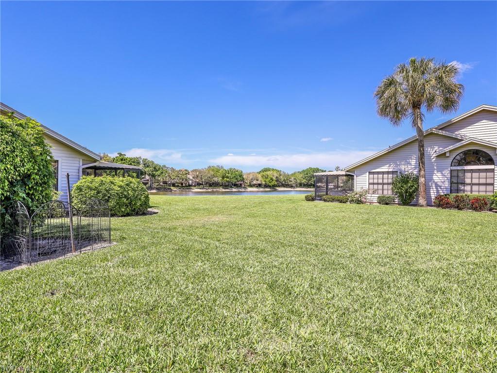 Rarely available lakefront attached villa located in the heart of Naples nestled in the charming community of Huntington at Walden Oaks! Spanning nearly 1600 square feet, this home boasts a private entrance, an oversized expansive driveway & two-car garage located on one of the largest corner lots in the community. This home has been tastefully remodeled with caring attention to detail and is the standard for modern in-town living. The house features an updated kitchen with Cherry Cabinets, solid surfaces, a double oven and chef's island. The spacious bedrooms are located strategically within the home and a spacious den that can double as a 3nd bedroom or office / additional sitting room. The primary bathroom shower has been redone and the cabinetry awaits your touches. The 2nd bathroom is wonderful for guests and allows for complete privacy. The long lake view from the extended patio is adorned with anti-slide tile and offers endless outdoor enjoyment. The backyard has lush well cared landscaping and affords a private secluded experience. Community amenities include organized water aerobics classes, pickleball courts, tennis courts with community play times, a clubhouse with a well stocked library and walking trails galore. This is one of the only villas in coveted North Naples with a two-car garage that offers in-town living. This owner has made this home care free for its next owner including storm protection, a double layered 2019 roof, AC in 2018, double oven in 2023 and a 2015 kitchen renovation with Cherry Cabinets & solid surface countertops. The HOA fees are extremely affordable and make this community even more special.