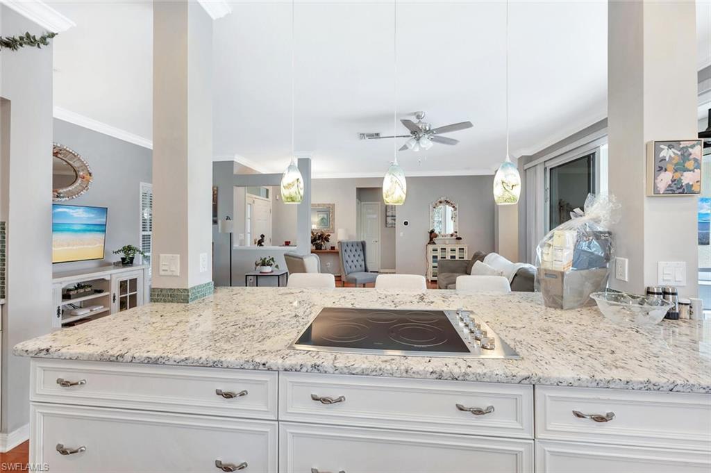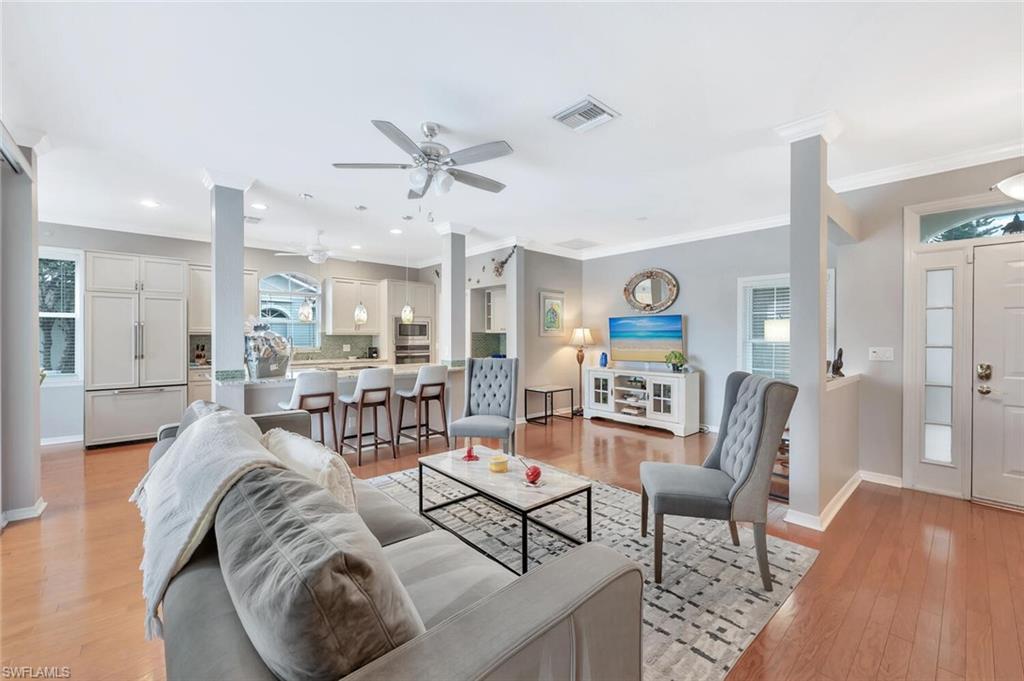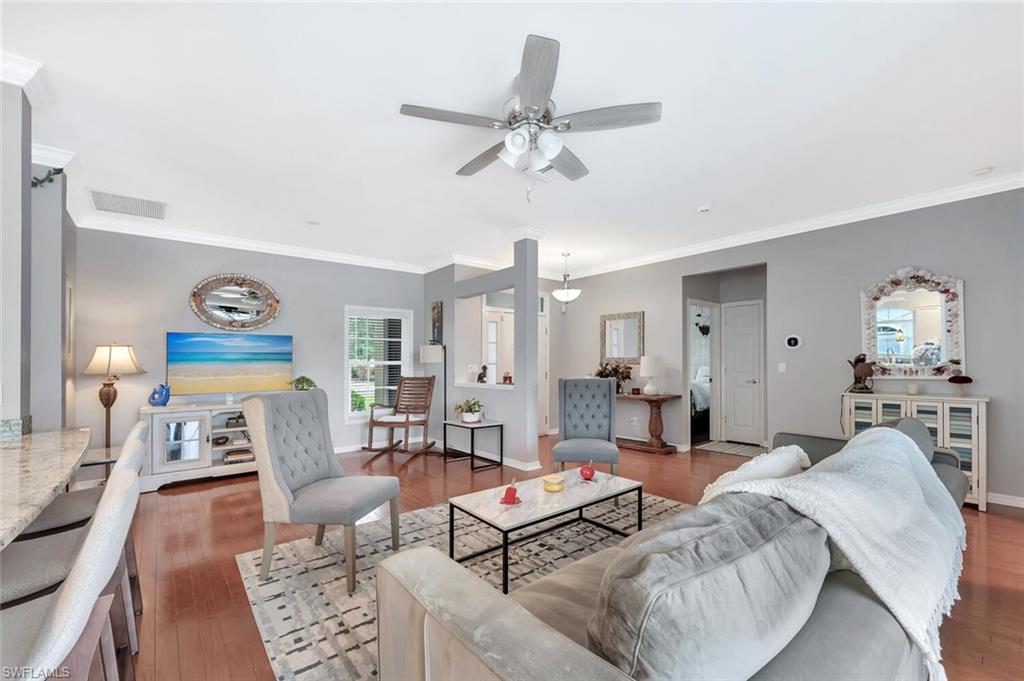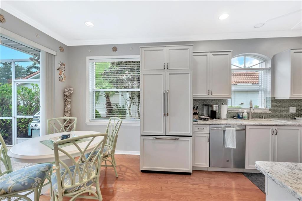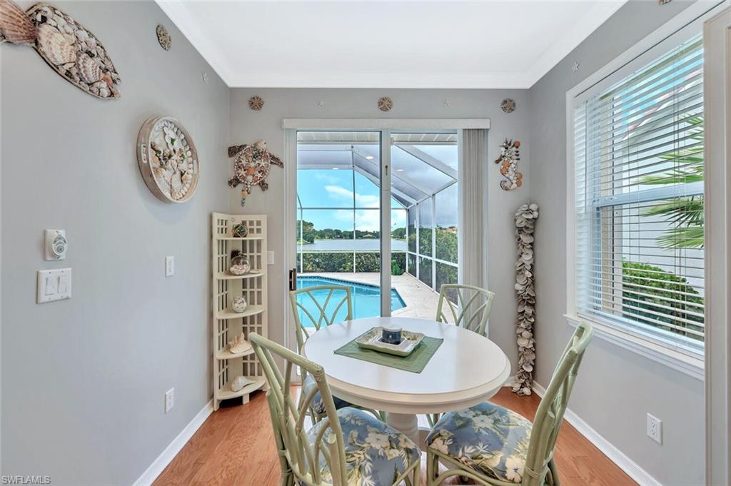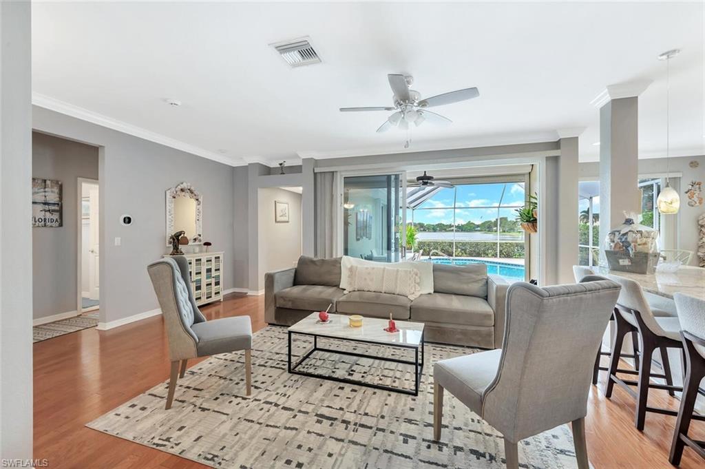 Fully Furnished 3 bedroom, 2 bath, 2 car garage Single Family pool home just minutes from downtown Naples. Enjoy all the features this home has to offer. A Heated swimming pool with a lake view, a pavered patio to layout in the Naples sun and a fully decorated home with everything you need for comfort. If you enjoy cooking this kitchen has a separate cooktop; combo oven and microwave; beautiful backsplash tiles and spacious countertops. Gorgeous flooring throughout this home. The owner's suite has views of the lake and an access door that goes to the pool area, mirrored closets and the owner's bath has dual sinks, walk in shower and picture window above the sink for extra lighting. The second and third bedroom have a shared bathroom with a combo tub and shower. The laundry room has a washer/dryer and extra cabinets for storage. The amenities included in this community has a Clubhouse with a full kitchen, Community pool, tennis courts and pickleball. So close to Gulf beaches, Fine dining and shopping.