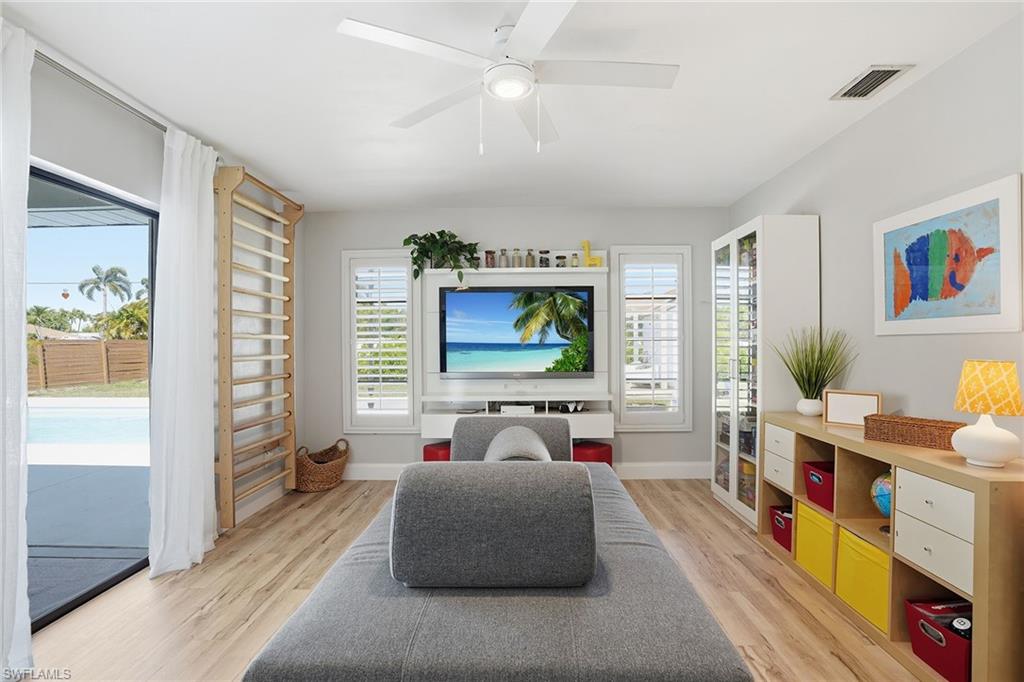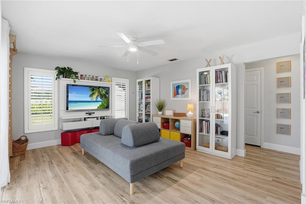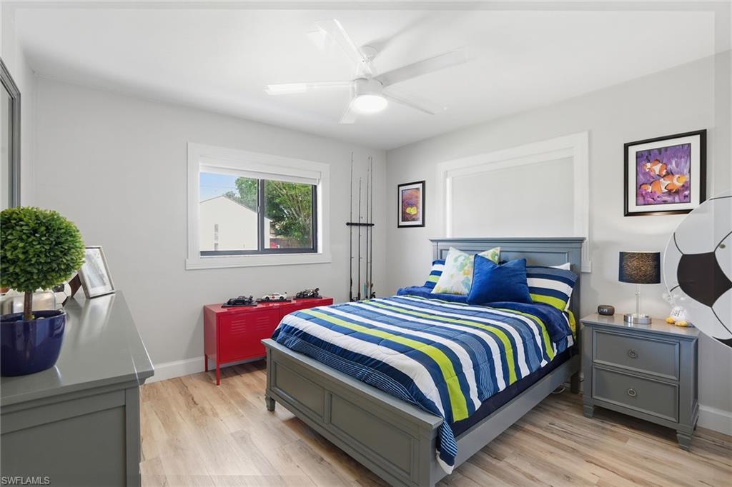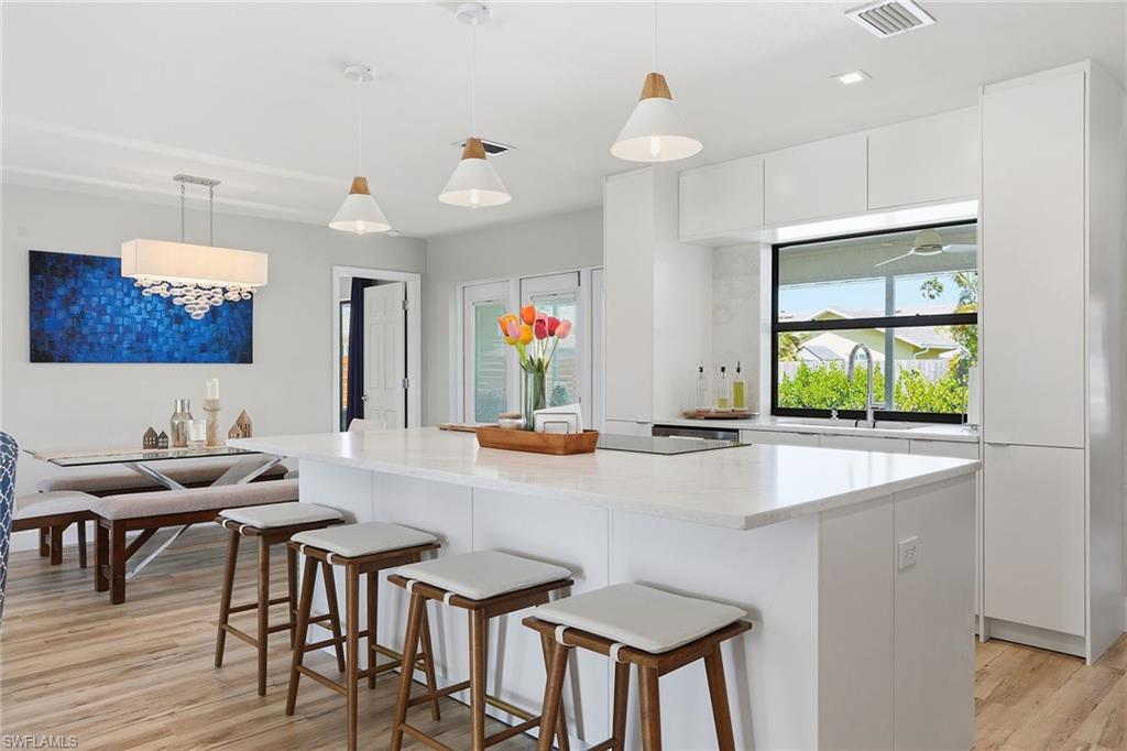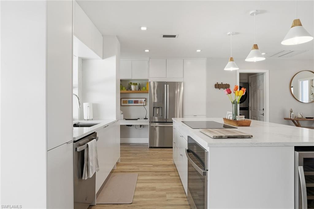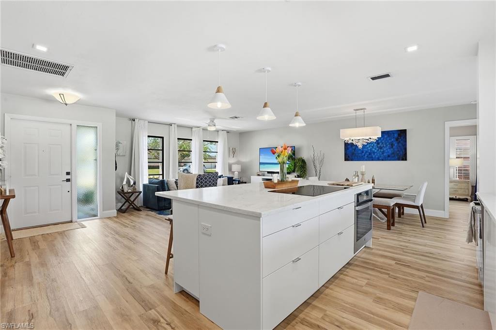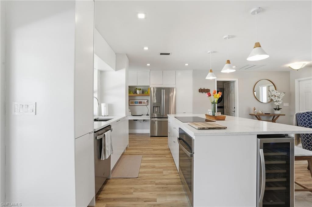 Welcome to this fully remodeled, meticulously kept residence offering thoughtfully designed living space on a .28-acre homesite in the desirable community of Willoughby Acres. This three-bedroom, two-bath home features luxury vinyl flooring throughout, abundant natural light, and an efficient floor plan that maximizes both comfort and functionality. A standout feature is the custom-built, 12x12 detached office/flex space, complete with its own split AC system - providing valuable additional air-conditioned square footage. Ideal for a home office, fitness studio, creative space, or guest overflow, this versatile structure offers the flexibility todayu2019s buyers are searching for and truly sets this property apart. Every detail has been carefully considered, creating a cohesive, move-in-ready living experience. The kitchen is equipped with 2025 GE appliances, a wine refrigerator, and a center island with additional storage - perfect for both everyday living and effortless entertaining. Step outside to enjoy true Florida living with a saltwater pool completed in 2023 and a spacious, fenced backyard offering privacy and plenty of room to relax or gather. Additional highlights include a two-car garage and a prime location just minutes from Gulf beaches, shopping, dining, and within an A-rated school zone.