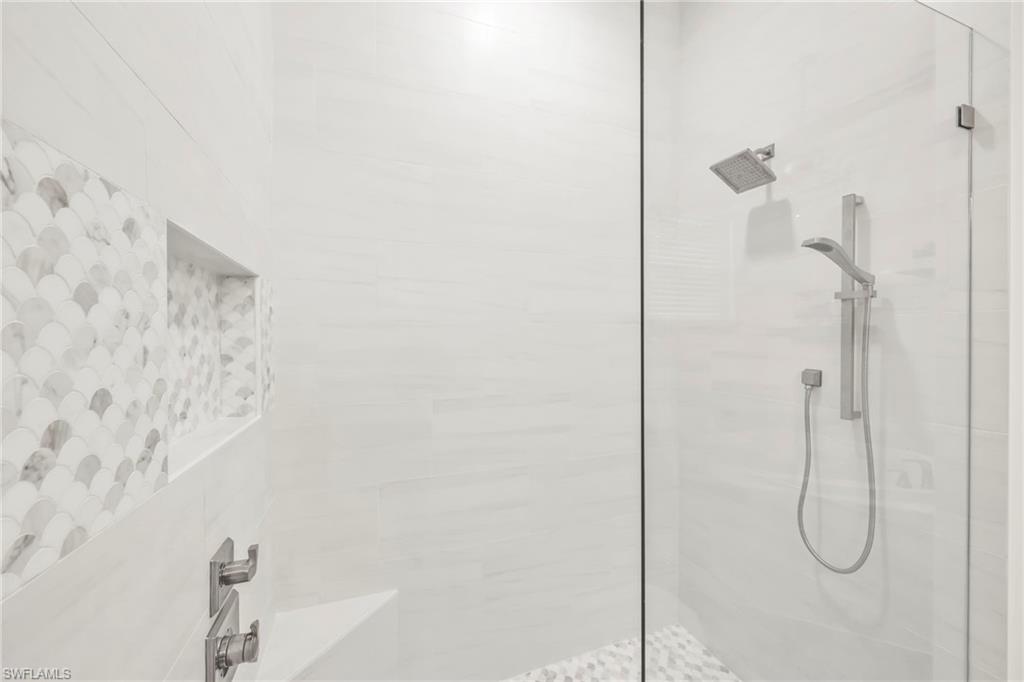Welcome to this exceptional 4-bedroom, 4-bath residence offering over 3,600 total square feet, perfectly set on a generous oversize lot in desirable Naples Florida. From the moment you arrive, the custom double solid wood entry doors create a striking first impression, just 5 miles from the pristine beaches of Naples. This stunning Mediterranean-style home is located within the prestigious gated Wilshire Lakes community. Each room has a sliding doors that offers natural light and extraordinary views to the pool or the natural beauty of the gardenRecently updated, the residence features fully renovated bathrooms, hurricane-impact, high-energy-efficiency windows and sliding doors, and lush, professionally landscaped grounds accented by ambient lighting. Designed for exceptional indoor-outdoor living, the private courtyard oasis includes a sparkling pool and hot tub, new 2022 pool heater, built-in grill with outdoor kitchenette, and a separate cabana complete with a full bath and kitchenetteu2014perfect for guests or entertaining.Inside, enjoy soaring ceilings, elegant crown molding, tile flooring throughout, granite countertops, and stainless-steel appliances. Additional highlights include remote-controlled screens at the entry and garage, along with a newer A/C system and water heater (2020). A beautiful 43-foot portico overlooks the peaceful backyard, providing an ideal space for relaxing or morning coffee.Located in an A+ rated school district, Wilshire Lakes offers low HOA fees and resort-style amenities including a clubhouse, fitness center, community pool, and more. This is luxury Florida living at its finest, combining privacy, sophistication, and proximity to world-class beaches, dining, and shopping.