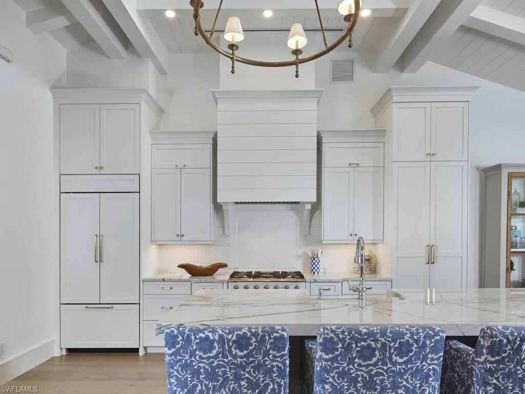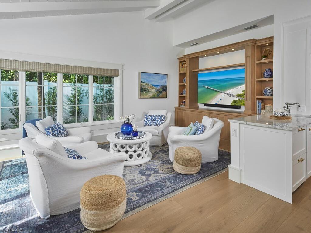 Live the charm of Old Florida with modern luxury in this reimagined home. Moments to Naples Beach, the Naples Pier, the shops and restaurants on 5th Avenue South and 3rd Street South. Completely re-constructed in 2015, and remodeled in 2021. The home features an open-concept floor plan with vaulted ceilings and multiple indoor living areas designed for everyday use and entertaining. The kitchen includes a raised ceiling, a La Cornue dual-fuel range, a large quartzite covered island, wet bar and custom cabinetry and built-ins. A separate study provides a private space for work, reading and privacy. The owneru2019s suite includes dual walk-in closets, a custom vanity, dual sinks, and a large shower. Three additional bedrooms each include an en-suite bathroom and walk-in closet. A spacious second-floor guest area offers flexible use for visitors, additional living space, or other household needs. The kitchen, dining, and sitting areas overlook the southern-exposed yard, which includes a pool and spa with shell-stone decking. This is Old Naples living at its finestu2014easy, breezy, beautifully refined, and perfectly situated for enjoying everything Naples has to offer.