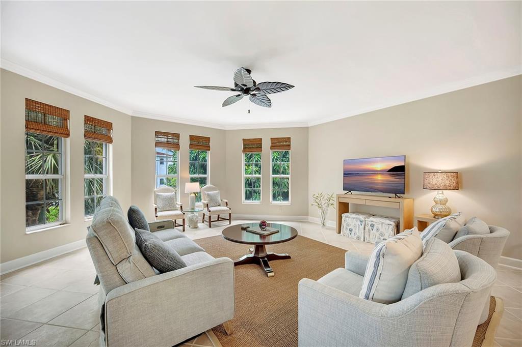 AVAILABLE SEASON 2026 or ANNUALLY, this charming OLD NAPLES condominium with 3-bedroom suites and a den is just 4 blocks from the beach and right around the corner from the beautiful shops and restaurants on Third Street. This spacious 2,700 sf home with a two-car garage features a large great room with two new reclining sofas as well as a table for playing cards or board games; a formal dining area with a wine cooler; a large, screened lanai for relaxing or outdoor dining, and an island kitchen with a coffee bar and another dining table. The primary bedroom suite has a king bed, an extra-large walk-in closet, a bathroom with both a soaking tub, walk-in shower, a water closet with a bidet, and a vanity with dual sinks. It also has its own screened balcony that faces west over the pool and a wall of sliding glass doors that can be left open in the cooler months to enjoy the fresh air. The second bedroom suite has a queen bed, and the third bedroom suite has both a queen and a twin bed. The den has located between the foyer and the great room and is accessible through French glass doors and is furnished with both a sofa bed and a desk. Isla Mar is a low-density condominium with only 16 units with a beautiful pool with a hot tub and grilling area for its residents. ALSO AVAILABLE ANNUALLY @ $8K monthly