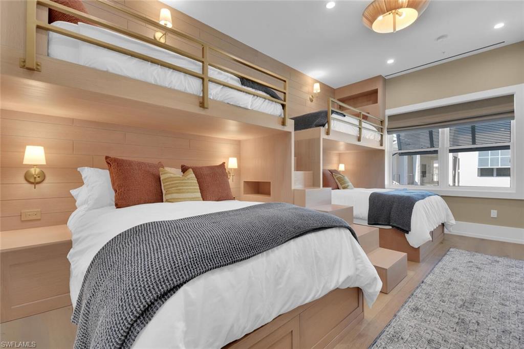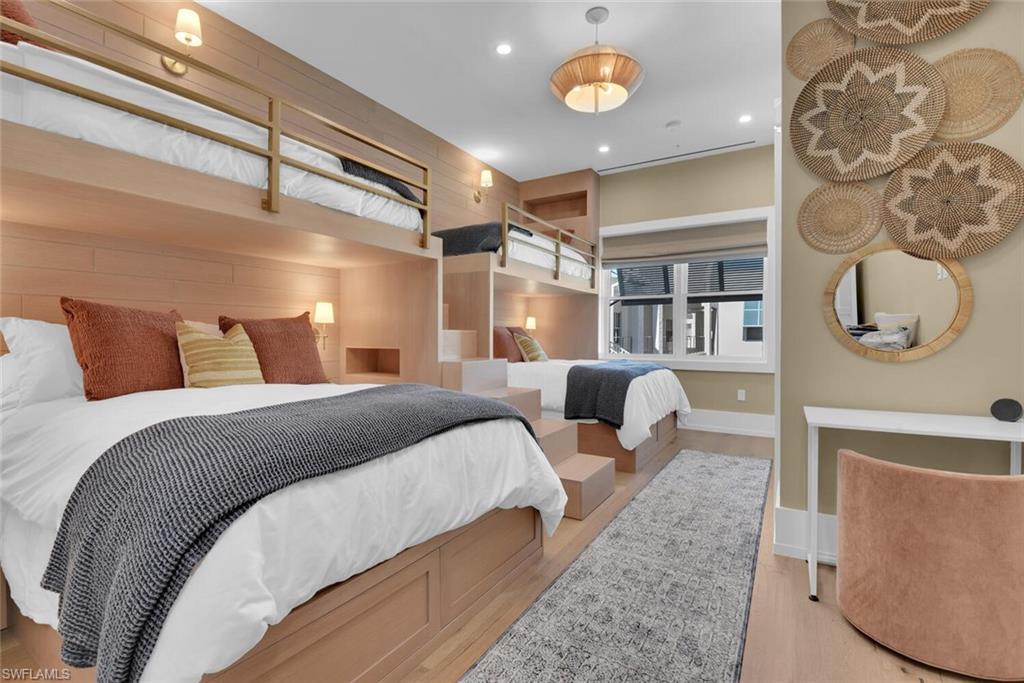 Indulge in the pinnacle of luxury and convenience at The Mark on 8th, a premier condominium development nestled in the heart of Olde Naples. Just a short walk from boutiques, quaint cafu00e9s, acclaimed restaurants, and the pristine beaches along the Gulf of Mexico, this exceptional location is ideal for a Southwest Florida getaway. Unit 311 is meticulously designed to accommodate larger groups. The primary suite offers designer furnishings, plush Beautyrest Black king-sized bed, Smart TV, and a luxurious en-suite bathroom, creating a serene retreat after a day of sun-soaked adventures. The split floor plan provides added privacy for the second bedroom, featuring custom bunk beds with two Beautyrest Black queen-sized beds beneath two Beautyrest Silver extra-large twin beds, perfect for family or guests. The light and bright kitchen is beautifully adorned with top-of-the-line appliances, including a wine refrigeratoru2014making it a chefu2019s paradise. For added convenience, a console table in the dining area converts to a spacious table that seats 6-8, maximizing flexibility for dining or use as a workspace. Step onto the serene balcony, which includes seating for four, where you can enjoy morning coffee while gazing over the expansive pool decku2014a peaceful oasis in the heart of downtown. The living room is a haven of relaxation, featuring an impressive 85-inch TV with Sonos surround sound for a true home-theater experience. At The Mark on 8th, youu2019ll enjoy an array of resort-style amenities, including a golf simulator, heated pool and spa, sauna, outdoor grilling area, fire pit, and a state-of-the-art fitness center. Whether youu2019re here to immerse yourself in downtownu2019s vibrant atmosphere or to simply relax and unwind, this luxurious residence has everything you need. With hotel-style accommodations and a 7-night minimum stay, itu2019s the perfect spot for a quick escape to Southwest Florida. Reserve your stay at The Mark on 8th, Residence 311, and experience the very best of Naples living!