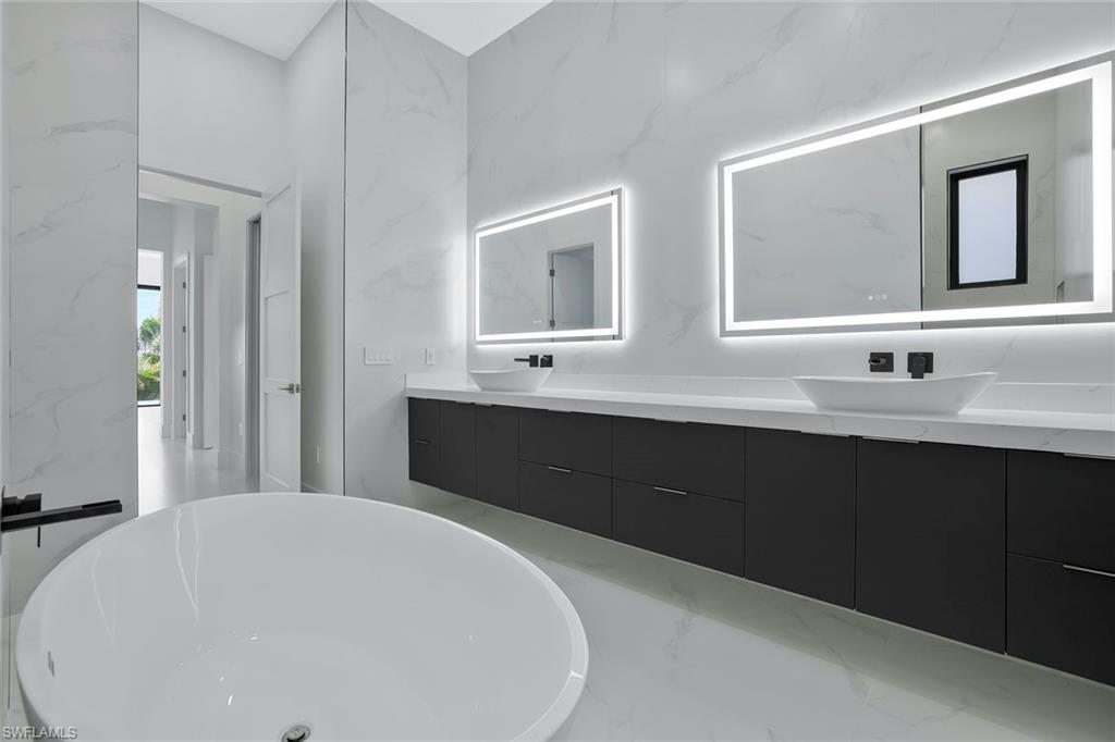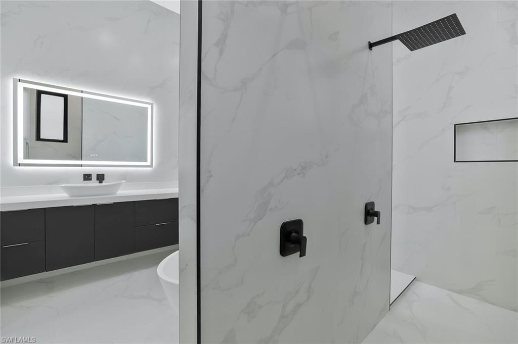 This exceptional new construction home is located in one of the best areas with no flood concerns. Designed with an open-concept layout and soaring ceilings, this residence features 4 bedrooms plus a dedicated office, 4 full bathrooms, and an inviting outdoor oasis complete with a pool and spa. The gourmet kitchen showcases quartz countertops, sleek modern cabinetry, a spacious center island, double oven, and a beverage cooleru2014perfect for entertaining. The expansive primary suite includes dramatic 90-degree sliders that open directly to the pool area. The luxurious en-suite bathroom features a freestanding tub, oversized shower, dual vanities, and two walk-in closets. One of the front bedrooms offers direct access to a charming front porch terrace, providing a private outdoor retreat. Additional highlights include impact-resistant windows, tile roof, 3-car garage, abundant natural light, and Lutron dimmer switches throughout the home for customizable lighting and ambiance.