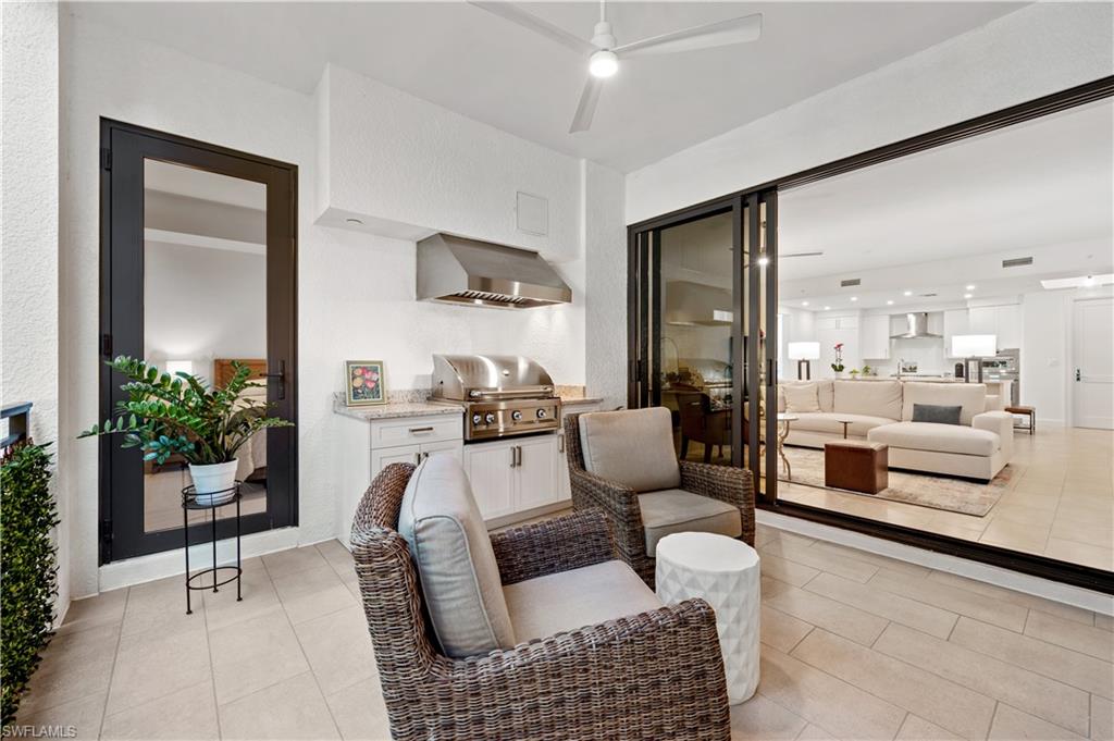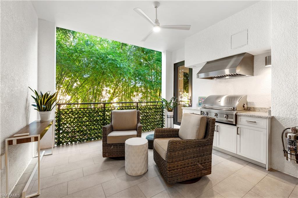 Welcome to resort-style living in beautiful Naples, Florida. This 2-bedroom + den, 2.5-bathroom pool-level condo combines luxury, comfort, and convenienceu2014all just u00be of a mile from the beaches of the Gulf of Mexico and five blocks from world-famous Fifth Avenue South.Step inside and experience modern elegance throughout, featuring a chefs kitchen with a gas stove and thermador appliances. The private outdoor kitchen with built-in grill is perfect for entertaining or enjoying quiet evenings surrounded by lush, tropical vegetation. The open-concept design provides seamless flow between indoor and outdoor living, offering the ideal Naples lifestyle.This home includes two assigned parking spaces and extra climate-controlled storage, adding convenience and value.The community amenities are truly exceptionalu2014enjoy a resort-style pool with two 90-foot lap lanes, zero-entry access, and two hot tubs, along with a state-of-the-art fitness center, game room, movie theater, bocce courts, hammock lawn and social room. Pet lovers will appreciate the fenced-in dog park and beautifully landscaped ground-level park. A complimentary community shuttle makes getting to the beach or dinner effortless.For your guests, the community offers six rentable guest suites, and for your morning coffee or evening bite, Bad Ass Coffee and Mr. 01 Pizza are conveniently located on site.Experience the best of Naples livingu2014relaxed, refined, and right where you want to be.