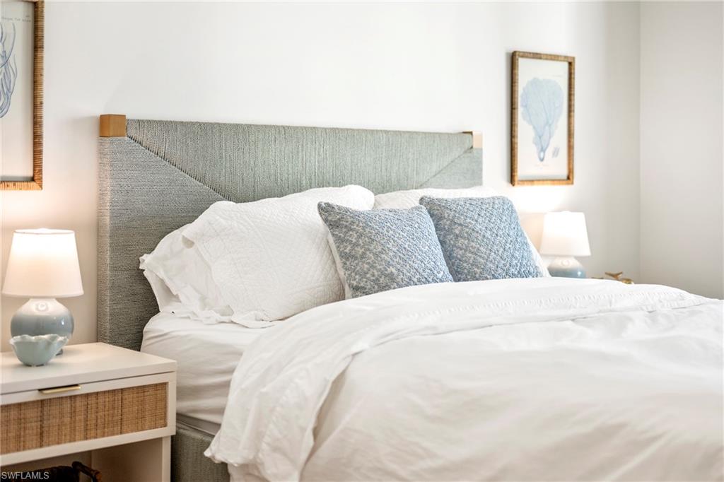 Now includes a private, oversized 2 car garage! Beautifully furnished luxury residence just minutes from the beach and Fifth Avenue South.This spacious 2-bedroom + den, 2.5-bath condominium offers nearly 2,000 square feet of refined living and is being offered fully furnished with designer pieces from Restoration Hardware, Serena & Lily, and Jenni Kayne, creating a truly move-in-ready Naples retreat.Inside, a bright open-concept floor plan features sleek contemporary finishes and coveted western exposure that fills the home with warm natural light. The peaceful courtyard-facing lanai provides a private setting for morning coffee or evening cocktails. A versatile den offers flexibility for a home office or additional guest space, while the spacious primary suite and well-appointed guest bedroom provide comfort and privacy.The residence includes two private storage closetsu2014one in the garage and one on the residential flooru2014offering rare additional storage. The private 2 car garage was upgraded with polyaspartic coated floor and has a dehumidifier for humidity control. Residents enjoy resort-style amenities including a state-of-the-art fitness center with massage rooms, elegant social lounge, game room, private movie theater, landscaped park with fenced dog area, and six guest suites for visiting friends and family. A private community shuttle offers easy transportation throughout the area.With designer furnishings, generous living space, and a premier location just minutes from the beach and Fifth Avenue South, this residence offers an exceptional opportunity to enjoy the best of Naples living.