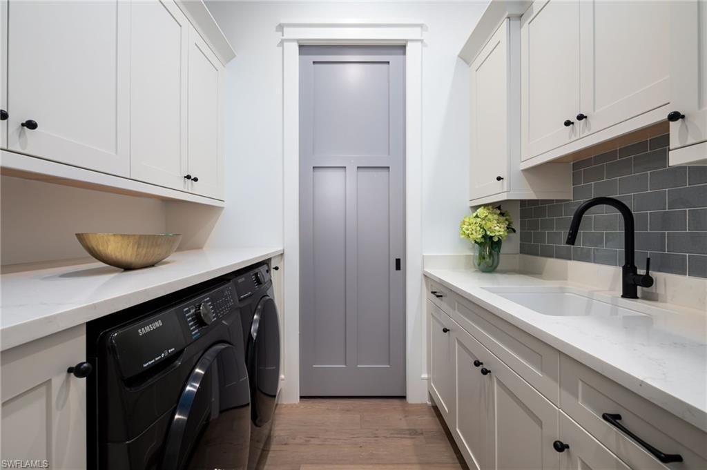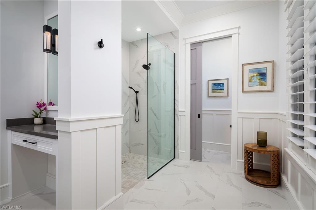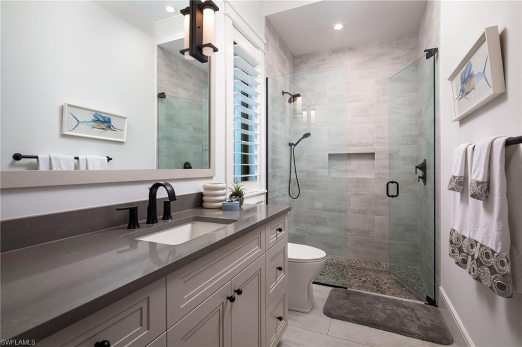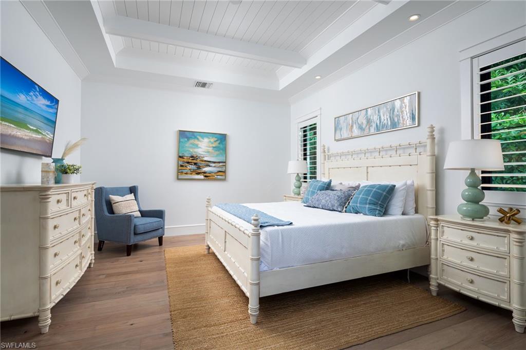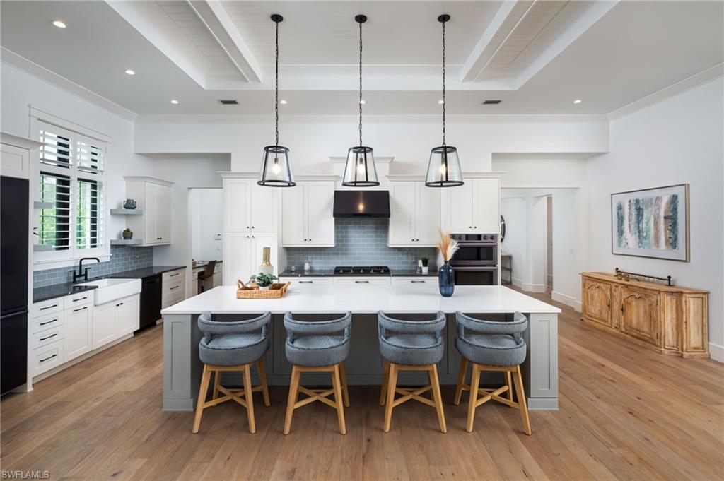 Thoughtfully designed by renowned architect Falconer Jones, this newer construction Lake Park home is just minutes to downtown Naples, with walkability to 5th Avenue and the beaches, offering modern coastal living with high-end finishes and seamless indoor-outdoor flow. The floor plan is ideal for entertaining and family gatherings, with wide-plank wood flooring throughout, designer tile, and curated finishes that give the home a clean, modern feel, while vaulted ceilings create volume and natural light across the main living spaces. The chefu2019s kitchen features custom KBC cabinetry, a large center island with pendant lighting, 36u201d gas cooktop, Samsung and Dacor appliances, and a wine cooleru2014designed for both everyday living and entertaining. The outdoor living space is a true highlight, featuring a south-facing gas-heated pool that enjoys sun all day, along with a water feature, covered lanai with roll-down screens, outdoor kitchen with gas grill, and outdoor showeru2014creating a private resort-style setting. Built with concrete block construction, PGT impact windows, and a standing seam metal roof for durability and peace of mind, along with an air-conditioned garage offering flexible use and added comfort. Located in the highly sought-after Lake Park neighborhood, just minutes to downtown Naples and 5th Avenue, in the heart of Olde Naples.