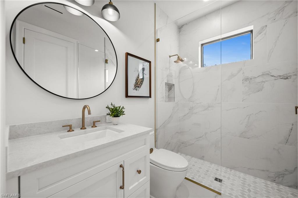 Discover this exceptional new construction masterpiece built by luxury and high end Waterside Builders Inc. With a focus on high quality construction and impeccable quality in every detail. Checking all the boxes with concrete block construction on both levels, hurricane impact glass, highly desired southern-facing pool deck for year round enjoyment, and piece of mind high and dry lot on a quiet, charming non-thoroughfare street. Blending neutral woods, golden tones and black accents offers a modern traditional aesthetic flowing with any incorporated decor vibe. An expansive layout featuring wide plank hardwood flooring and wood beam ceiling detail boasts a welcoming great room opening to an intimate fireplace hang out, dreamy pool spa area and impressive grilling station. The first-floor primary suite exudes space and tranquillity with a master bath that draws you in presenting exquisite tile work and having a spa like feel. The additional main floor en-suite bedroom has flexibility to serve as an office as well. The upstairs includes an inviting, fun loft space opening to an oversized spacious outdoor balcony plus three additional bedrooms. Tucked away in the heart of Lake Park offering a superior location for a quick bike, golf cart ride to downtown's world-class dining, shopping, nearby new Four Seasons Hotel and of course Naples pristine beaches!