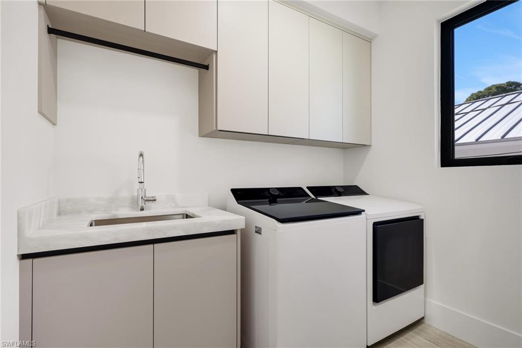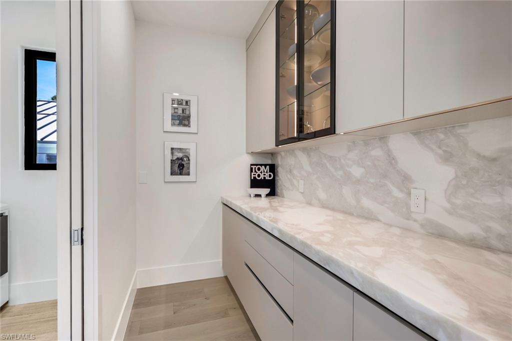 Just completed in Lake Park.This newly constructed 4 bedroom plus den, 4.5 bath residence offers 3,253 square feet under air and 6,641 total square feet, with expansive outdoor living designed for the Naples lifestyle. Set on a south-facing lot, the home is filled with natural light throughout the day and is delivered fully furnished with designer-selected pieces.The first-floor primary suite features a spa-level bath and dual walk-in closets. Wide-plank wood flooring runs throughout, complemented by Italian marble in the kitchen and baths. The kitchen is outfitted with Sub-Zero and Wolf appliances, custom cabinetry, and refined finishes.The covered outdoor kitchen opens to a heated saltwater pool and spa, creating seamless indoor-outdoor flow. A 500-gallon underground gas tank services both indoor and outdoor cooktops and allows for future full-house generator installation.Impact-rated windows, a flexible bonus space with elevator option, and a two-car garage with direct interior access complete the home.Minutes to Downtown Naples, Fifth Avenue South, and the Gulf beaches.