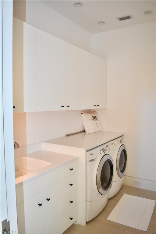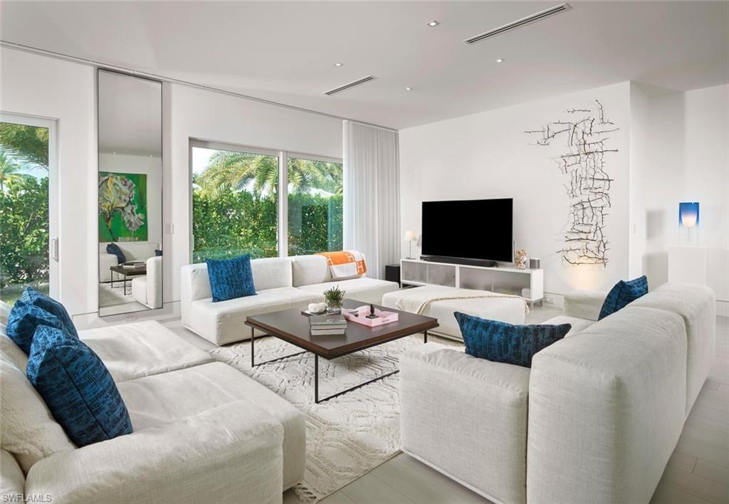 Modern comfort awaits in this meticulously maintained three or four bedroom custom built designer home. The detail and design are one of a kind, European modern influence reveals 360 degrees of open space with a ton of natural light. Custom cabinetry and refinement throughout. Oversized 2 car garage , room for a golf cart and plenty of elevated garage space to store kayaks, bicycles, storage, whatever your heart desires. Beautiful wall space inside the home for artworks to be displayed. A private courtyard is adjacent to a custom designed kitchen that boasts a 12 ft quartz countertop. Beautiful southwest pool area surrounded by artificial turf, and a detailed covered lanai. Beautiful sunsets to the west. The dedicated office space can easily be turned into the 4th bedroom. Main floor consists of 2 primary suites, 2nd story loft bedroom with ensuite can be for quests or a personal live in Nanny or used as an office or den or a media room. Possibilities are endless for you to customize this beautiful home ever more. Shows like new. This 3445 sq.ft. of clean architectural lines await in this magazine worthy residence situated in the coveted Lake Park neighborhood. The location is ideal, within close proximity to Naples beautiful beaches, upscale restaurants, boutique shopping , the new Four Seasons Hotel and so much more. Come see this beautiful home. Flood Elevation Certificate for this home is 9.5.