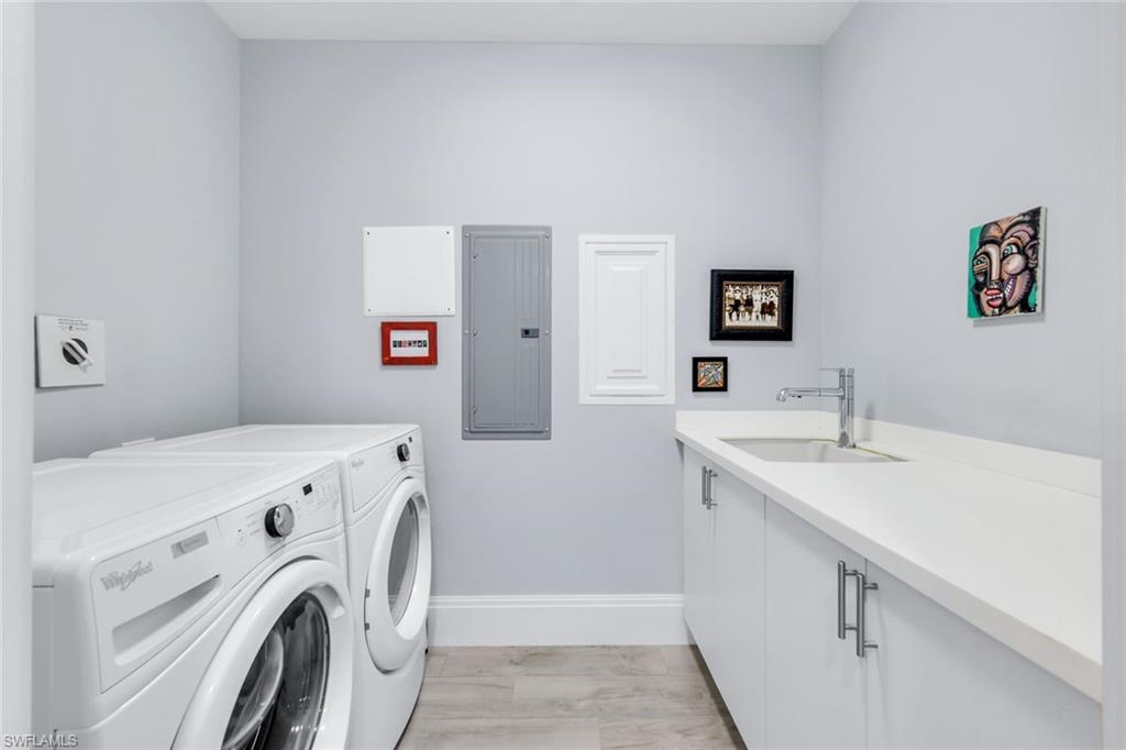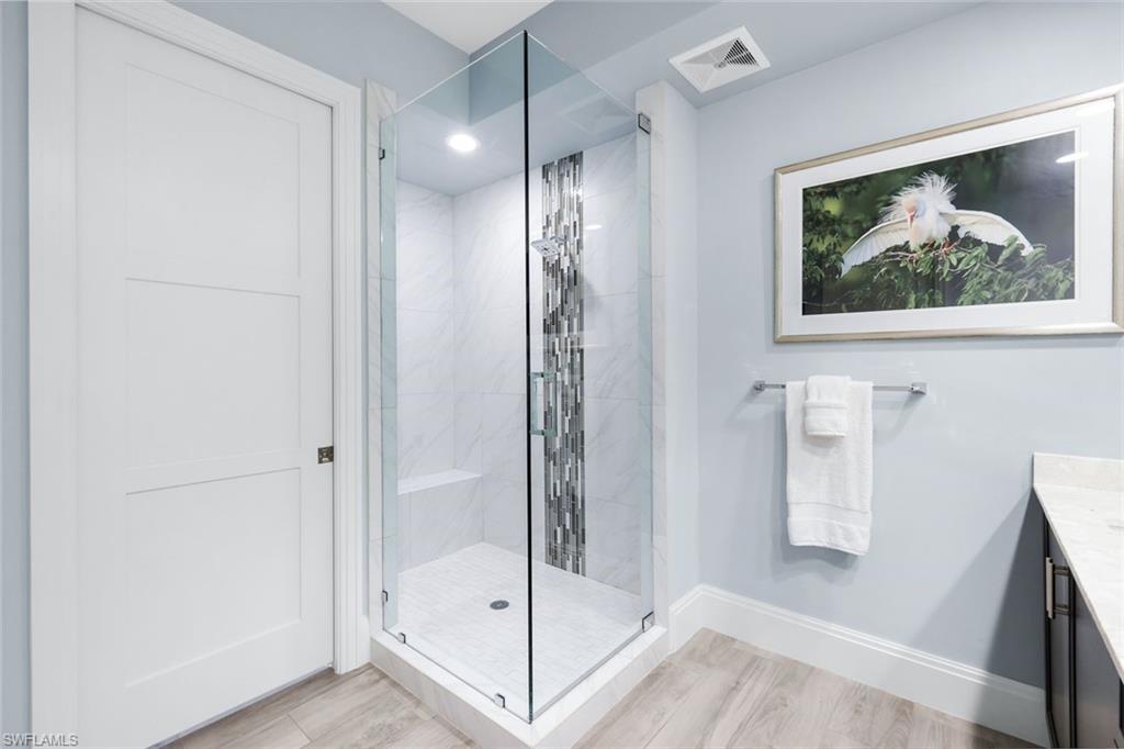 Enjoy peaceful mornings and lovely eastern exposure overlooking a lush courtyard in this beautifully upgraded Naples Square condo. This two-bedroom, two-bath plus den residence features plank tile flooring throughout, upgraded cabinets and countertops, a stylish kitchen backsplash with a hood over the range, and thoughtful listello accents in both the primary and guest showers. The primary bath includes dual sinks, and a custom entry wall with a lighted niche adds a welcoming touch as you step inside.Naples Square offers a resort-style courtyard with a pool and spa, gas grills, social room, fitness center, and gated under-building garage parking with private storage. Perfectly located in the heart of the Naples Design District, youu2019re just steps from Gulfshore Playhouse, Baker Park, the restaurants and shops of 5th Avenue South, and so much more.