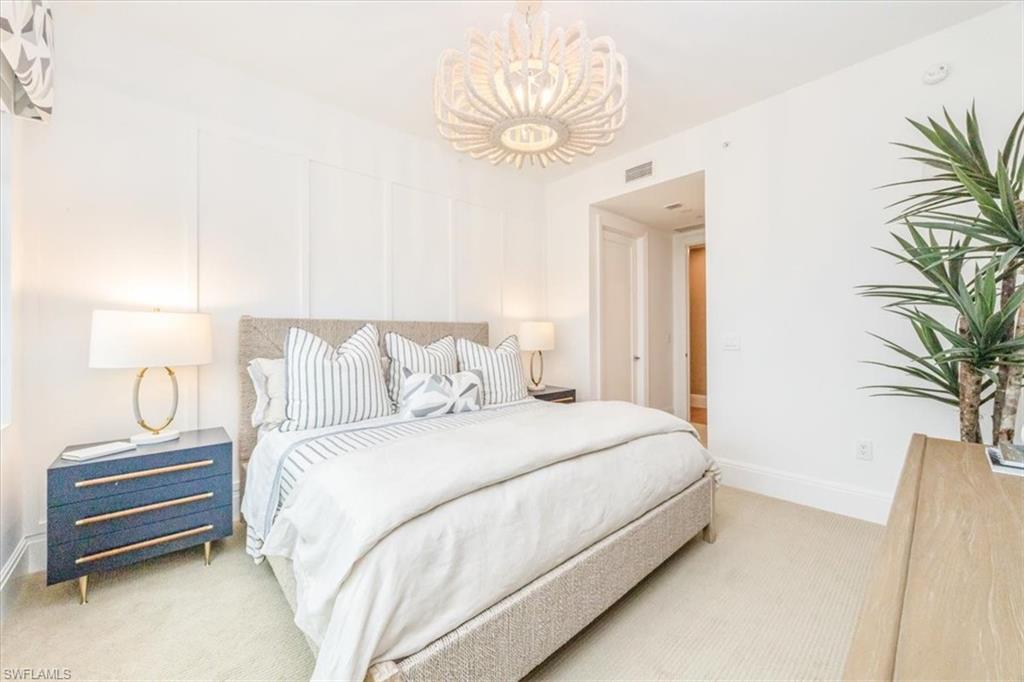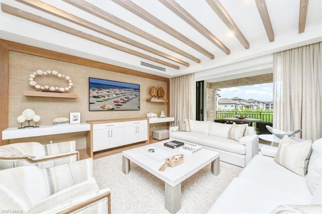 Live at the pinnacle of downtown luxury in this stunning u2018Espadau2019 4BR+Den, 4.5BA designer residence in Quattro at Naples Squareu2014one of Naplesu2019 most coveted walkable addresses. This former model with over $485K in upgrades is professionally furnished and curated with custom, high-end designer finishes, lives like a single-family home with soaring 10' ceilings, two private balconies, and an open, light-filled layout crafted for effortless, elevated living and entertaining.The chef-inspired kitchen is a true showstopper, equipped with a full Sub-Zero/Wolf appliance suiteu2014including integrated refrigeration, 5-burner gas cooktop with hood, wall oven, microwave, Miele dishwasher, and a 46-bottle wine cooler. Elegant quartz countertops, Dornbracht fixtures, a Franke sink, and premium Irpina cabinetry with soft-close drawers, pullouts, and custom storage solutions elevate the space to a culinary dream. Retreat to four luxurious en-suite bedrooms and a versatile den complete with custom iron and glass French door wall system and built-ins, ideal for an office or media room. Luxurious Legno Bastone wood flooring, beamed ceilings, custom furnishings, lighting, wall coverings, and window treatments highlight impeccable detailing throughout making this home truly move-in ready for even the most discriminating, sophisticated homeowner.The proximity of this homeu2019s large balcony provides added privacy and long garden views of the courtyard. Additional special features include the convenience of an assigned, covered parking space which can accommodate two vehicles as well as a golf cart, moke or vespa. Quattro at Naples Square offers world class, resort-style amenities, including concierge services to assist with everyday tasks, including booking spa appointments, making reservations at the finest restaurants, and organizing events. You will enjoy unbeatable proximity to Old Naples' prestigious 5th Avenue South shopping, fine dining, entertainment, and beaches. A rare opportunity to own a fully finished, magazine-worthy residence in the heart of Naples.