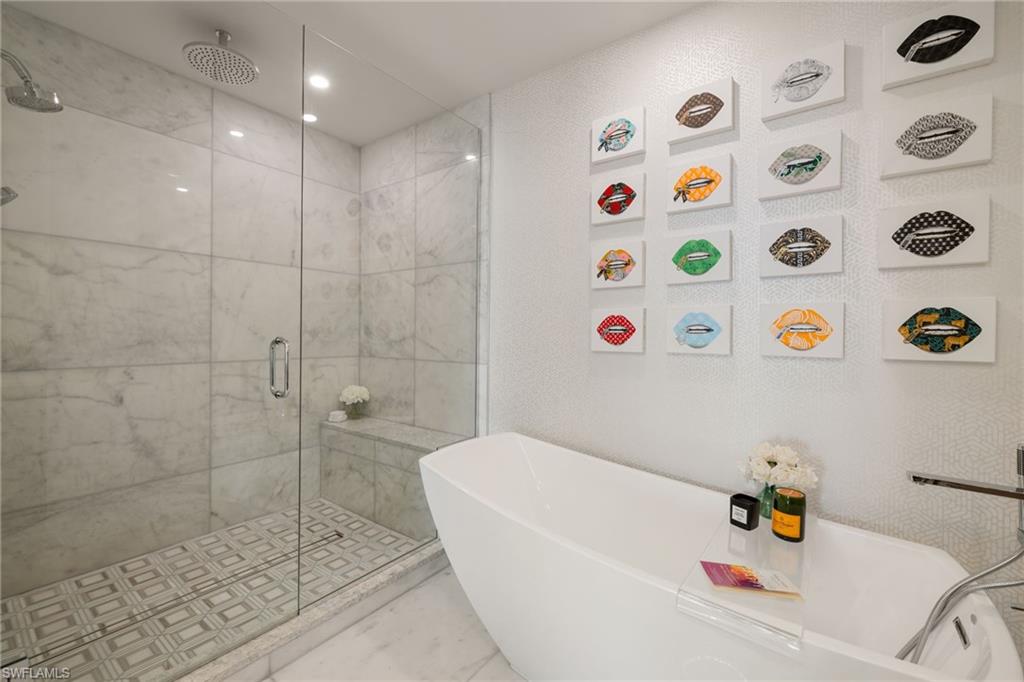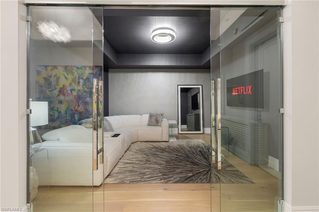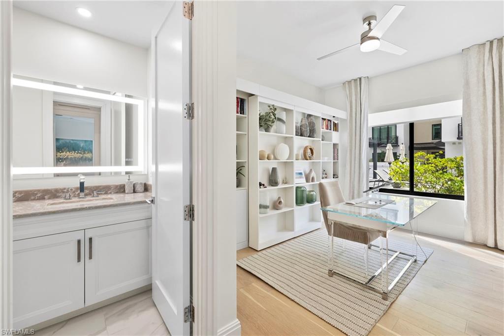UNIQUE & EXCLUSIVE CORNER RESIDENCE IN QUATTRO AT NAPLES SQUARE. The only unit in the building with direct walk-out access to the pool deck and direct access to steps down to 3rd St S. This fully customized, professionally designed home features an enhanced floor plan and luxury upgrades throughout, far exceeding developer standards. Beautifully finished with upgraded marble, stone, and fixtures. Premium additions including an infrared sauna, soda water on tap in the bar, and modern Italian designer lighting. This 3 bedroom + den residence lives like new construction and showcases hardwood flooring throughout, 10u2019 ceilings, impact-resistant windows, custom built-ins with illuminated purse and shoe displays, a walk-in pantry, motorized shades, water filtration/conditioning, and more.The chefu2019s kitchen is appointed with a commercial Sub-Zero refrigerator, upgraded Wolf appliance package with natural gas cooking, a wine fridge, and a wet bar with ice maker . Additional features include two side by side garage parking spaces with EV Charging, a private storage unit, and access to the exceptional amenities of Quattro and Naples Square.A resort-style pool with firepit and grilling area, fully appointed social room with kitchen and billiards table, and a state-of-the-art fitness center.Perfectly positioned in the heart of downtown Naples, just a short walk to 5th Ave S shopping & dining, 3rd Street South amenities, and world-class beaches and parks.