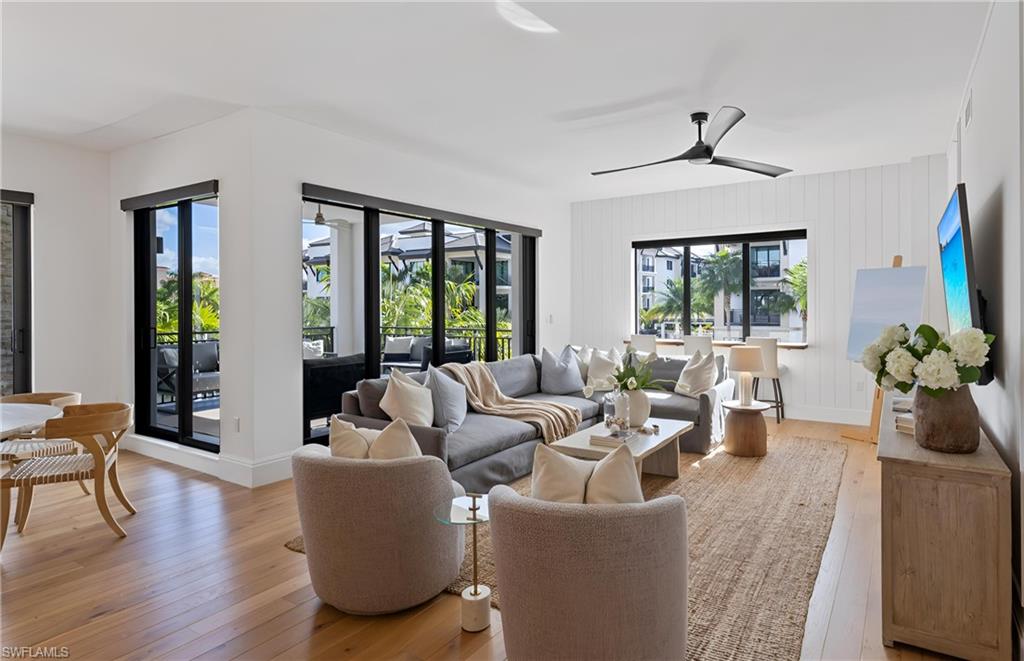 A rarely available, highly coveted corner residence with courtyard views in Naples Square III. This spacious home features three bedrooms plus a den and three full bathrooms, offering exceptional comfort and flexibility. With highly desirable southern and eastern exposure, the residence is filled with abundant natural light. Wake up to warm sun in the mornings while the large, covered balcony provides a cool, inviting space for evening relaxation and entertaining. The home has extensive upgrades throughout, including an oversized kitchen island, open shelving, a window-front workstation, and a generously sized den ideal for a home office, media room, or additional sleeping space for visiting guests. Naples Square III is an extremely well managed community that offers an impressive suite of amenities, including a fitness center, resort-style pool and spa, sun loungers, fire pits, outdoor grilling areas, a cabana with high-top seating, and a spacious clubhouse. The residence includes an assigned parking space, an additional storage unit, and ample guest parking within the secure, gated garage. Youu2019ll enjoy being close to the new Gulfshore Playhouse Theatre, the esteemed shops and restaurants of 5th Ave S and the pristine sands of Naples Beach. A standout opportunity to own one of the most desirable units in the heart of downtown Naples.