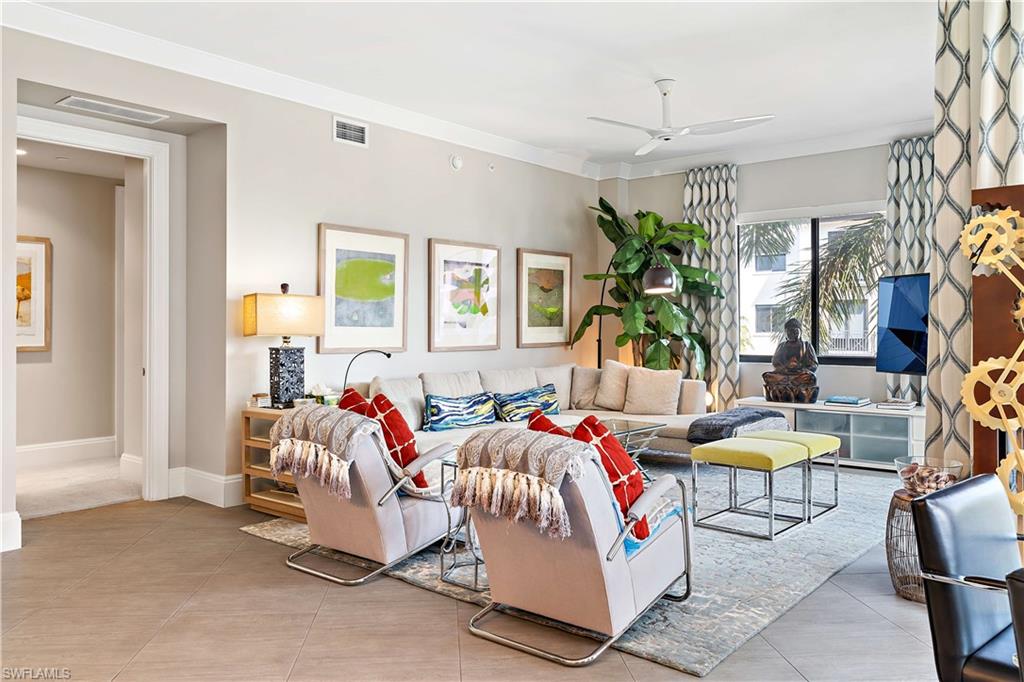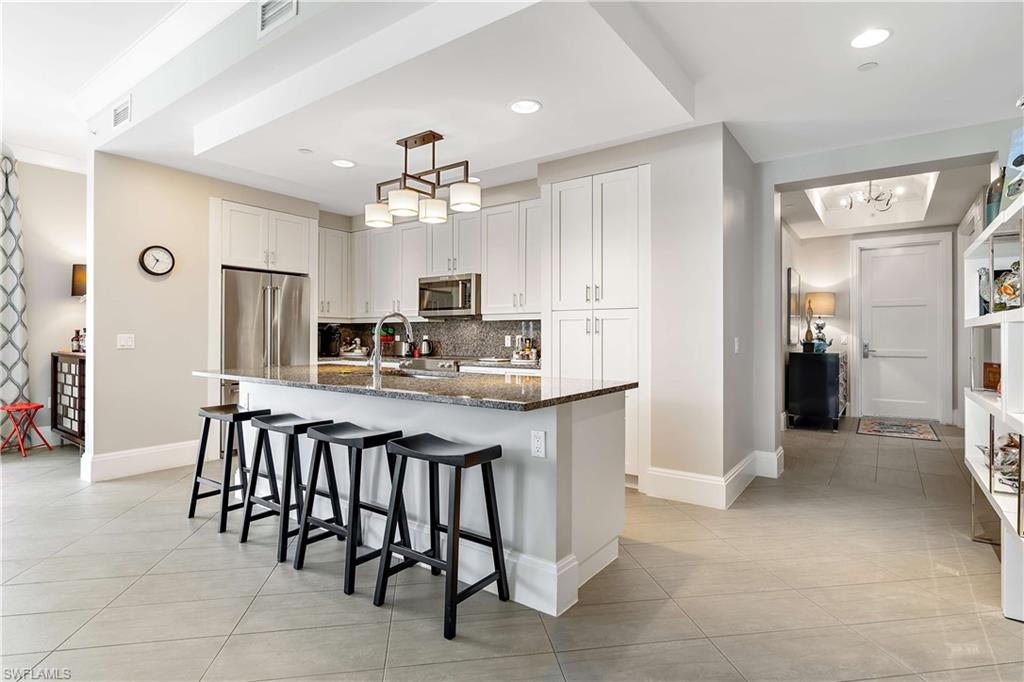 This beautifully appointed 3-bedroom, 3-bath home places you in the heart of Naples, just moments from premier shopping, dining, and entertainment. The open-concept floor plan offers generous living and dining spaces framed by expansive views, while the sleek kitchen with stainless steel appliances provides an inviting setting for both everyday living and entertaining.A spacious private balcony extends from the main living area, creating the perfect place to enjoy morning sunrises or relaxed evening breezes. The primary suite features a spa-inspired bath with soaking tub, glass-enclosed shower, and dual vanities, while two additional bedrooms each offer well-finished closet space and beautifully appointed baths for guests or family.Residents enjoy an exceptional collection of amenities, including a pavilion bar with gas grills, resort-style heated pool and spa, fire table lounge, controlled building and courtyard access, secure under-building parking, covered bicycle storage, fitness center, club room with bar, and a terrace featuring large-screen TVs. Donu2019t miss your opportunity to experience the very best of Naples living!